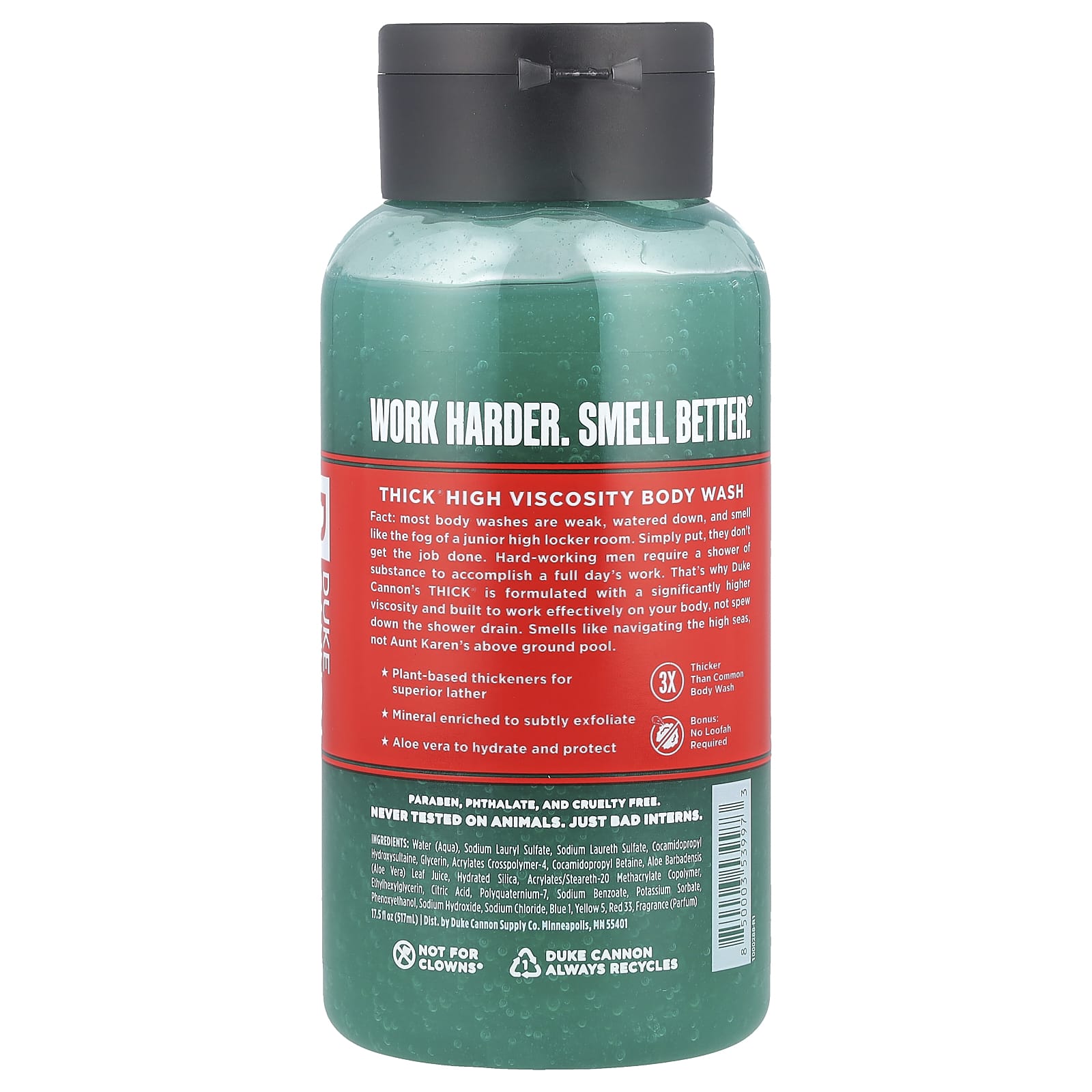 Факт: большинство гелей для душа слабые, разбавленные и пахнут туманом в раздевалке. Проще говоря, они не выполняют свою работу. Трудолюбивым мужчинам требуется активный душ, чтобы выполнять полный рабочий день. Вот почему средство THICK® от Duke Cannon имеет значительно более высокую вязкость и эффективно воздействует на организм, а не выбрасывается в канализацию. Пахнет плаванием в открытом море, а не купальней тети Карен.