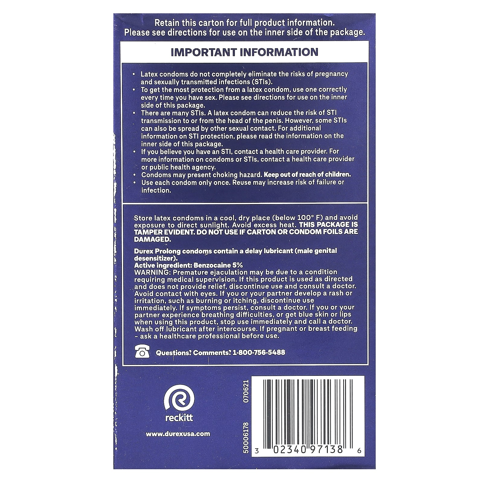 Презервативы Durex Prolong содержат смазку с задержкой (десенсибилизатор мужских половых органов).