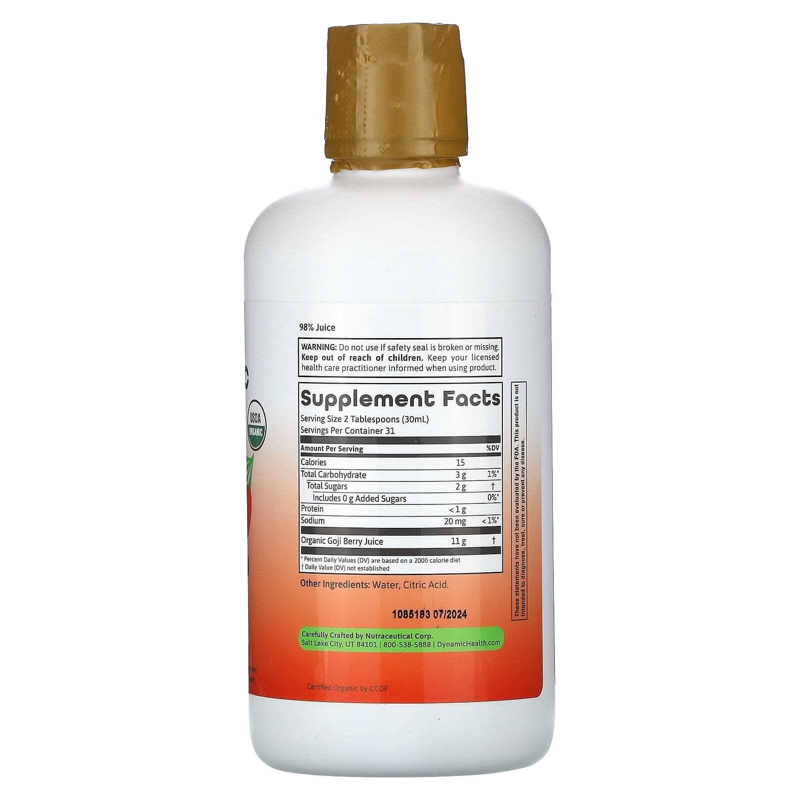 Dynamic Health, Certified Organic Goji Gold, 100% сок, 946 мл (32 жидк. унц.)