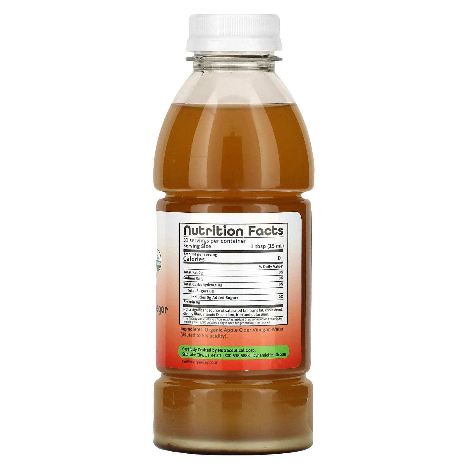 Органический неочищенный яблочный уксус Dynamic Health® содержит материнский уксус, который естественным образом образуется в непастеризованном уксусе с помощью acetobacter aceti.
