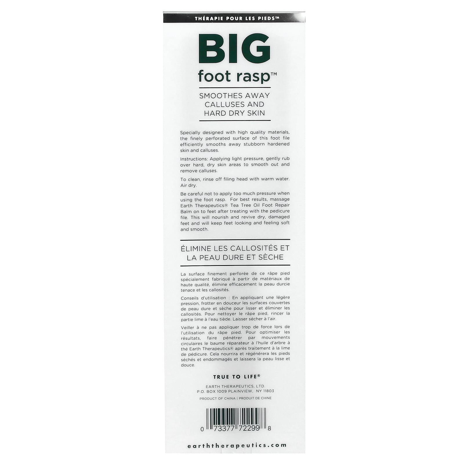 Будьте осторожны, не нажимайте слишком сильно при использовании тёрки для ног. Для достижения наилучших результатов нанесите восстанавливающий бальзам для стоп с маслом чайного дерева Earth Therapeutics® после обработки с помощью тёрки для ног. Бальзам питает и восстанавливает сухие, поврежденные стопы, а также сохраняет их мягкий и гладкий вид.