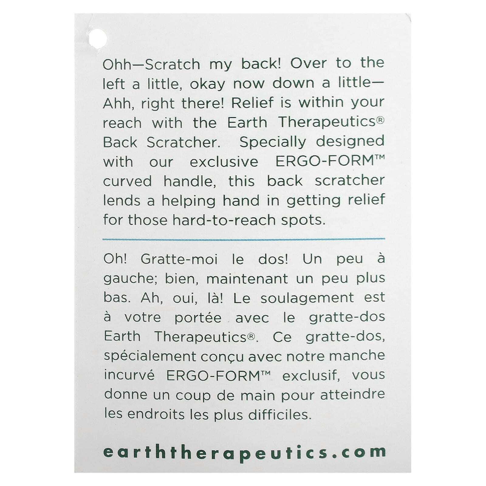 Охх-почешите мне спину! Немного налево, ладно, немного вниз ... Ах, вот так! Вы почувствуете облегчение со скребком для спины Earth Therapeutics®. Эта когтеточка для спины, специально разработанная с нашей эксклюзивной изогнутой ручкой ERGO-FORM ™, поможет вам избавиться от труднодоступных мест.
