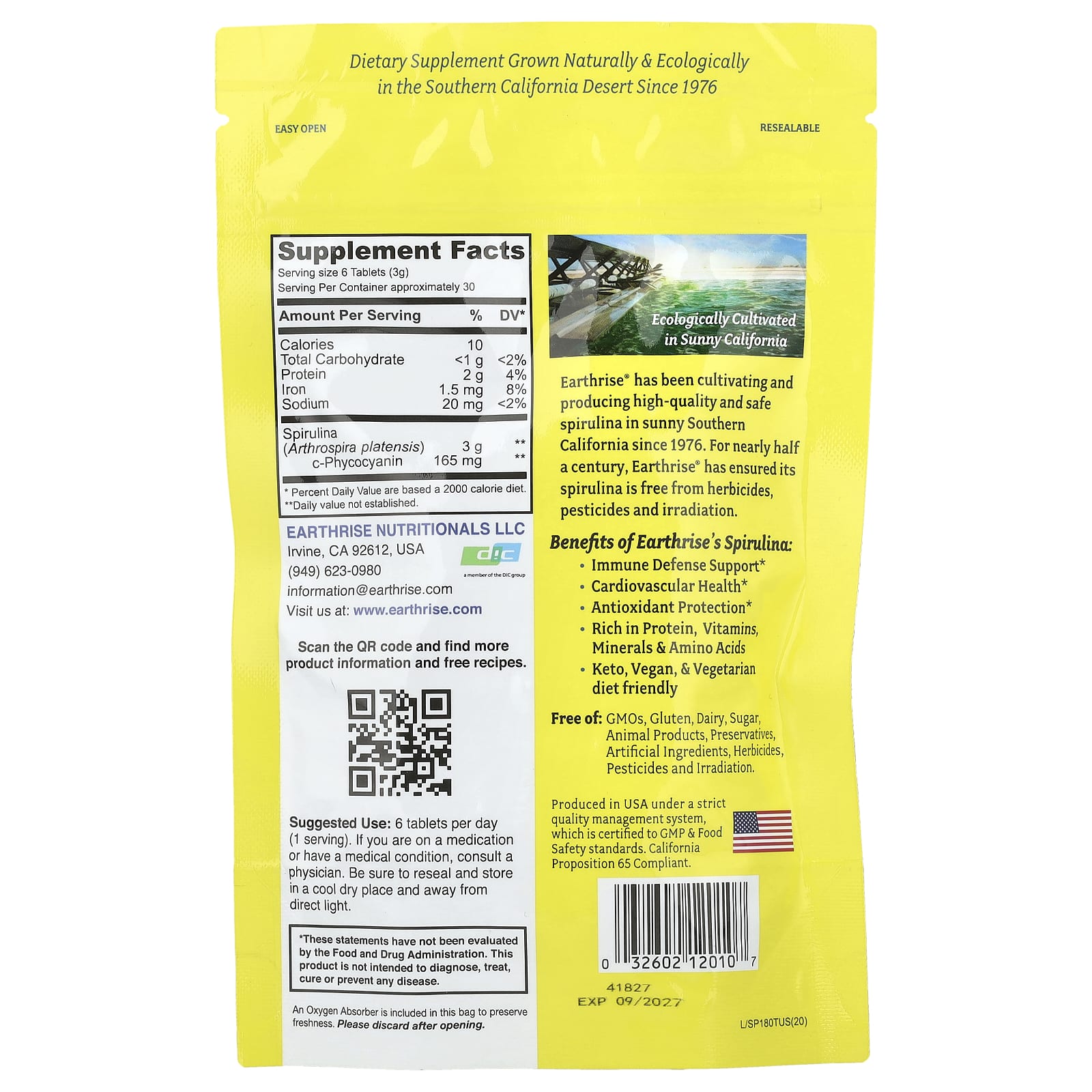 Earthrise, 100% спирулина, выращенная в Калифорнии, 500 мг, 180 таблеток