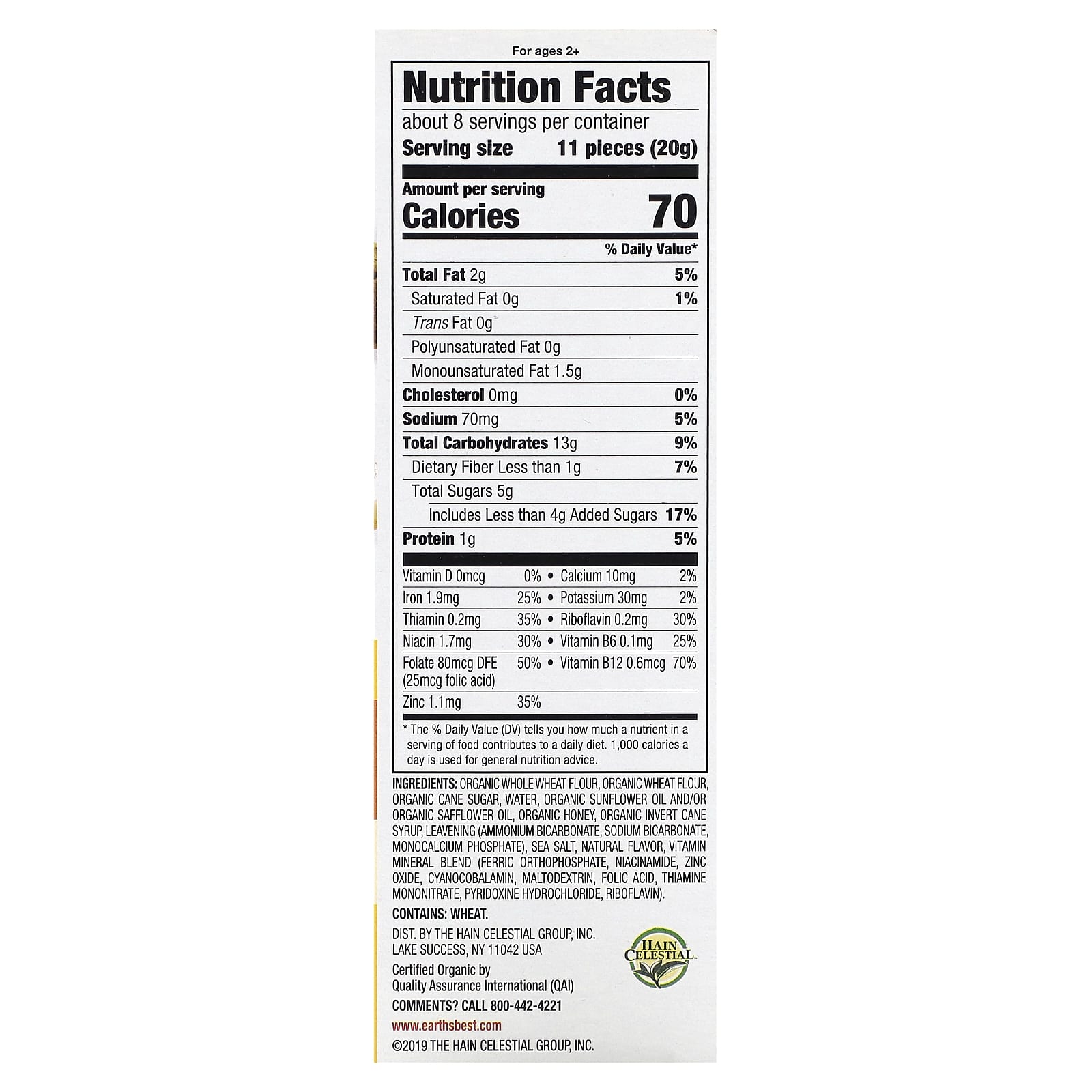 Одна порция Organic Crunchin' Grahams® является отличным источником цинка, обеспечивая 35% рекомендуемой суточной нормы для ребенка.
