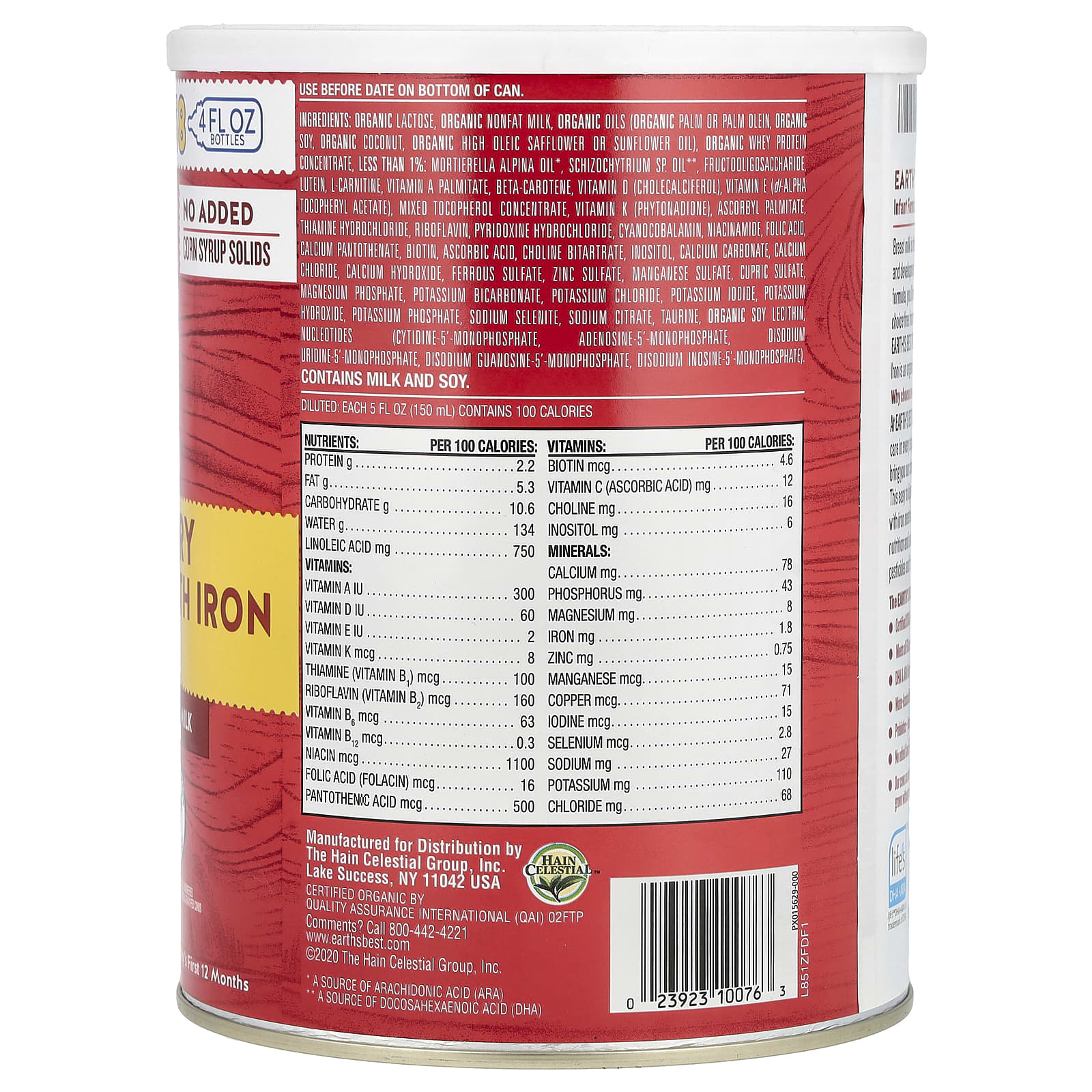 EARTH'S BEST ORGANIC®, смесь для младенцев с железом - ДГК и АРА