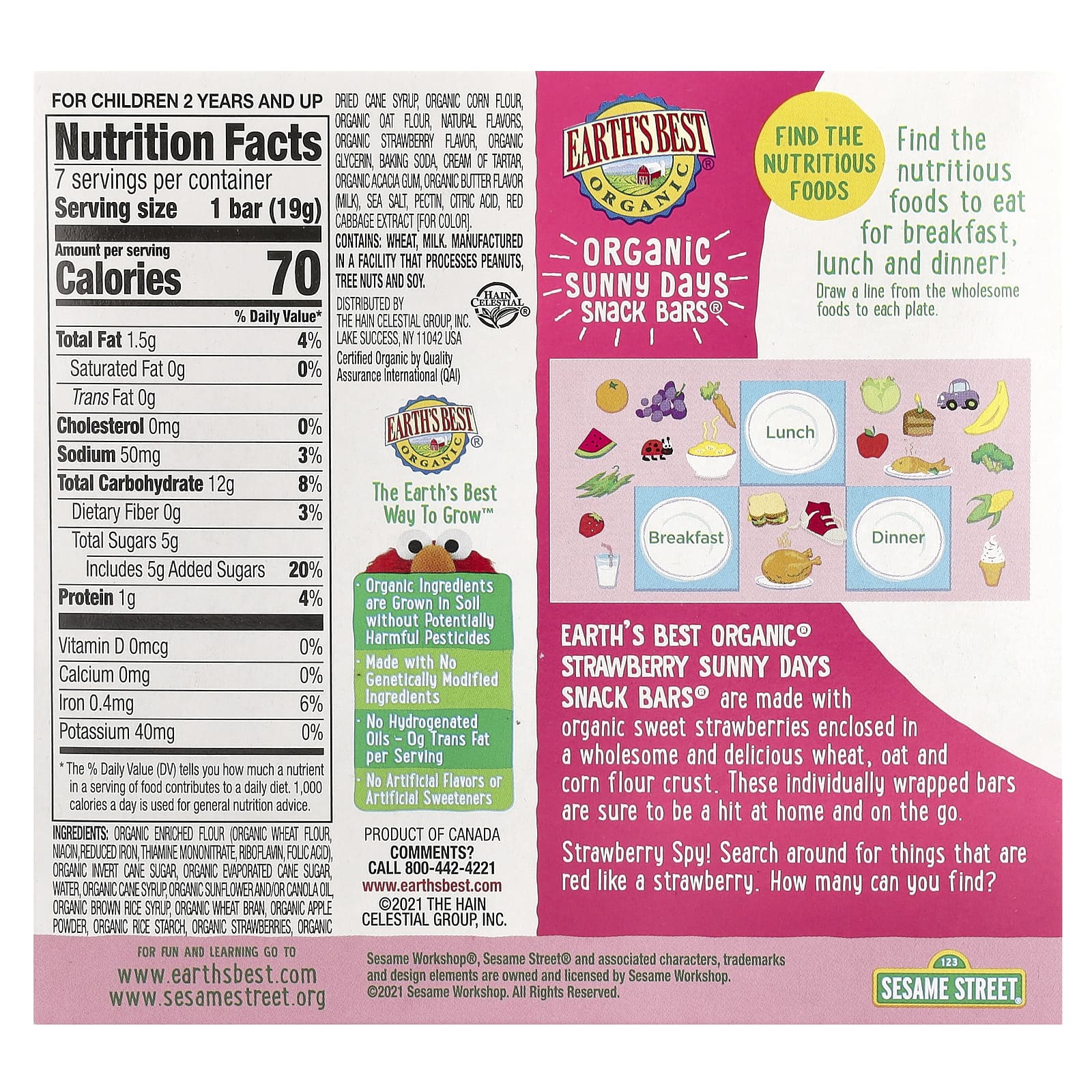 Earth's Best, Organic Sunny Days Snack Bars®, для детей от 2 лет, со вкусом клубники, 7 батончиков, по 19 г (0,67 унции)