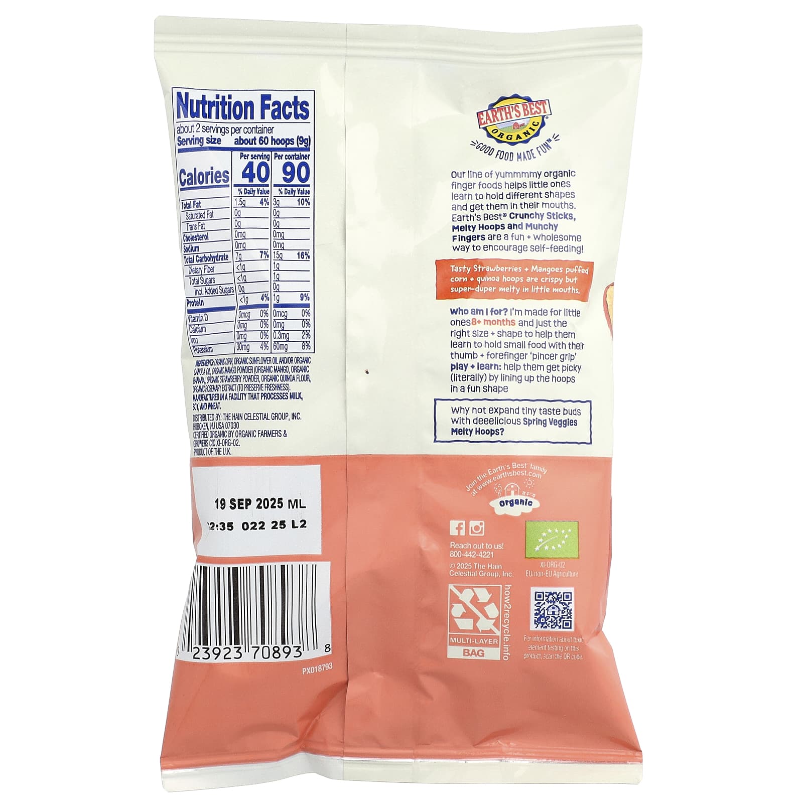 Органическая кукуруза, органическое подсолнечное масло и/или органическое масло канолы, порошок из органического манго (органическое манго, органический банан, органический клубничный порошок, органическая мука из киноа, экстракт органического розмарина (для сохранения свежести).