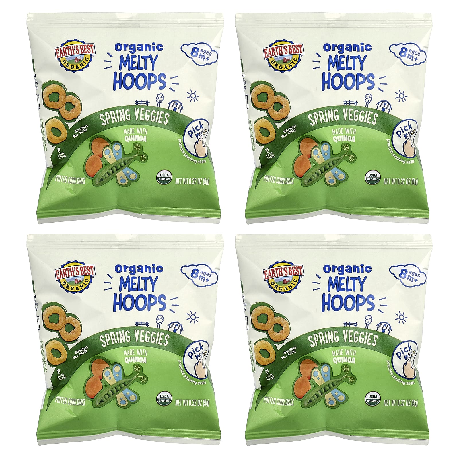 Вкусные весенние овощи: Воздушная кукуруза и киноа — хрустящие, но тающие на вкус маленькие кусочки киноа. Идеально подходит для употребления в дороге! Внутри 4 порции в индивидуальной упаковке.