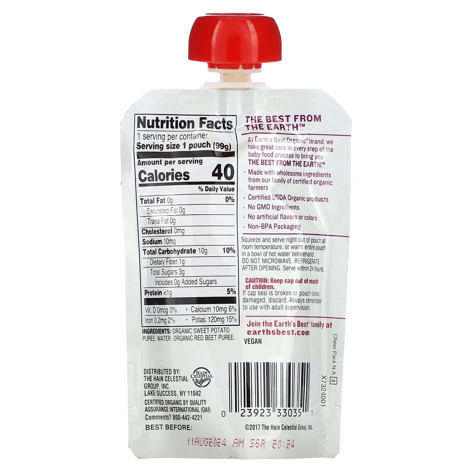 Органическое пюре из батата, вода, пюре из органической красной свеклы.