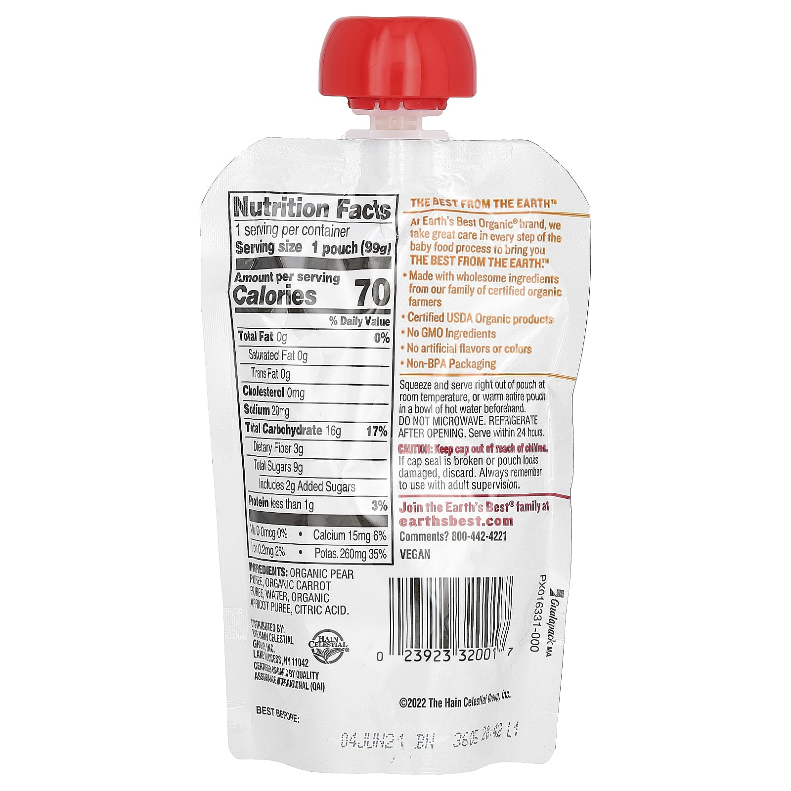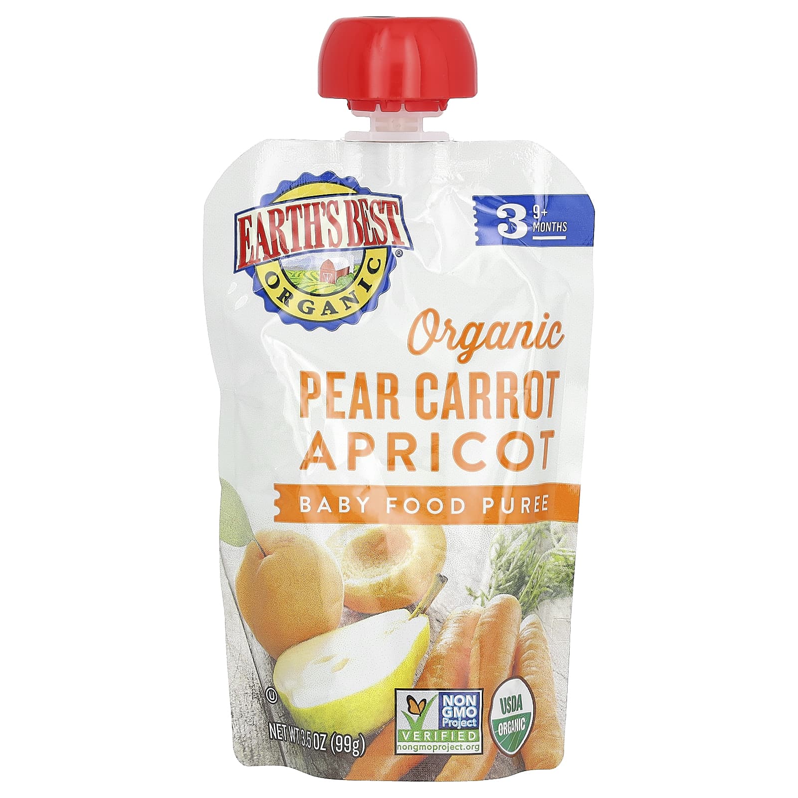 пюре из органической груши, пюре из органической моркови, вода, пюре из органических абрикосов, лимонная кислота.