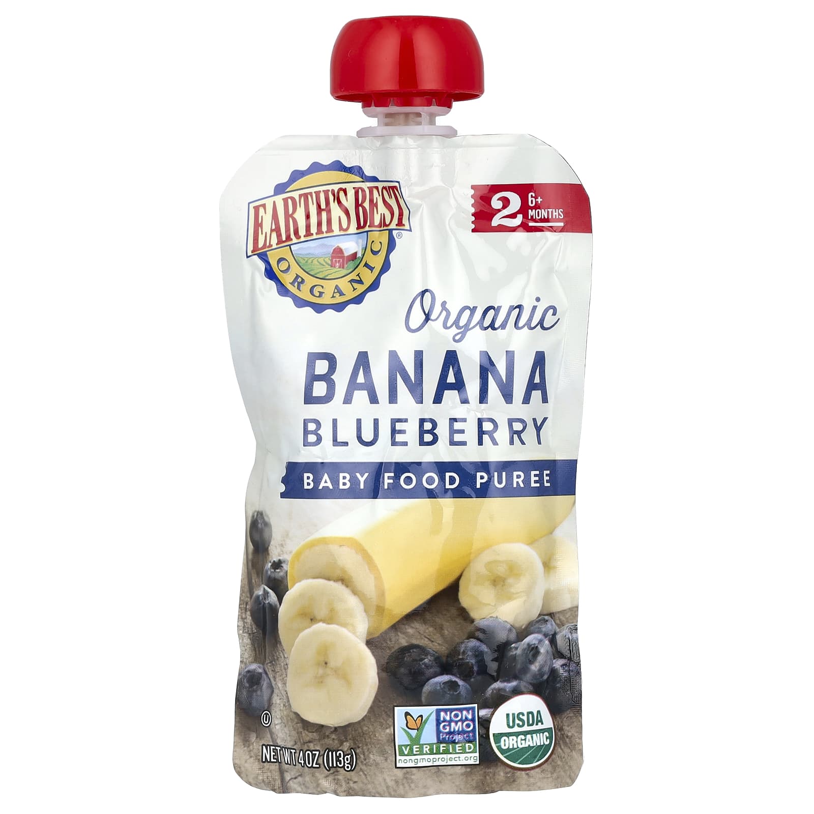 Органическое банановое пюре, вода, органическое пюре из голубики, лимонная кислота.