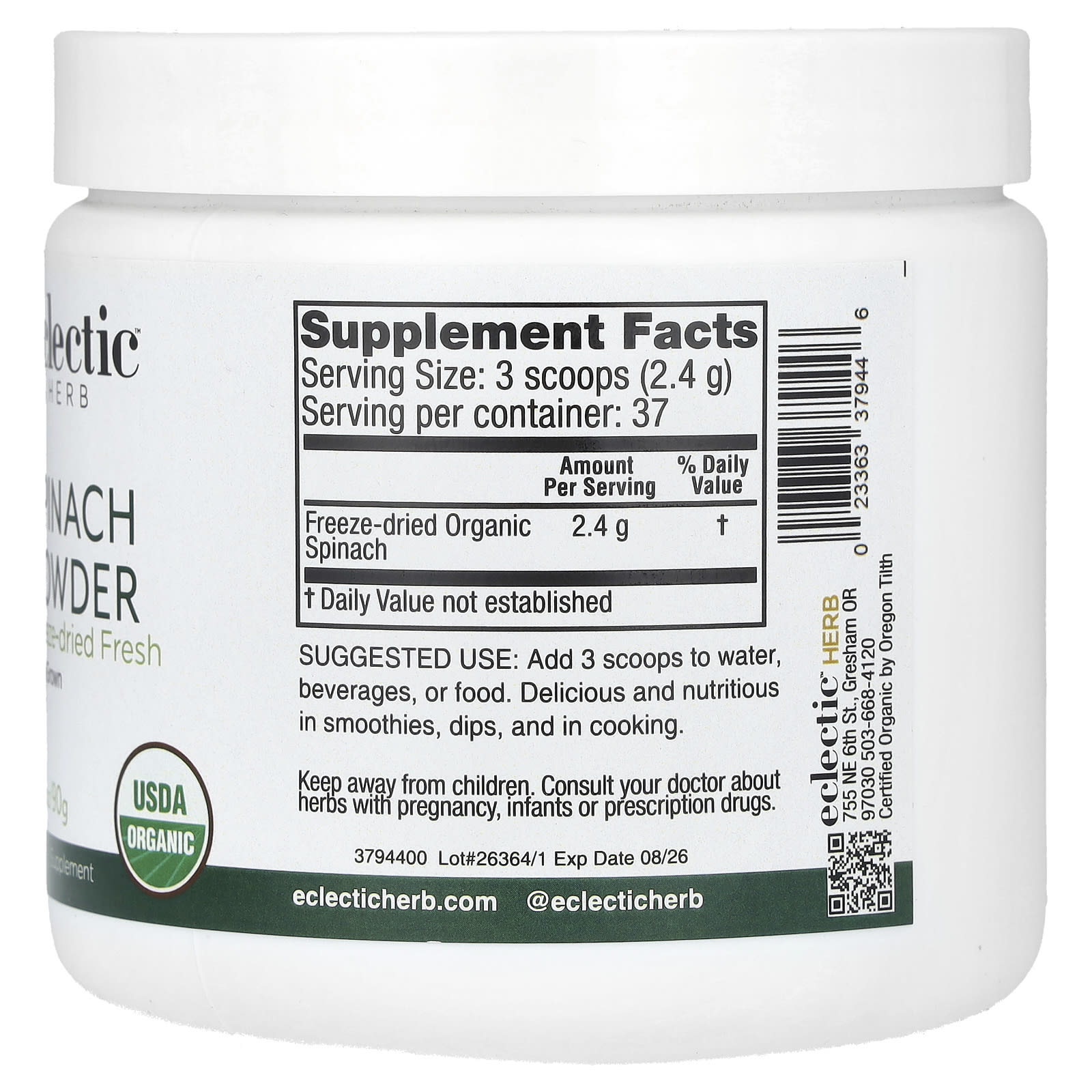 | Сублимированный органический шпинат | 2,4 г | † |