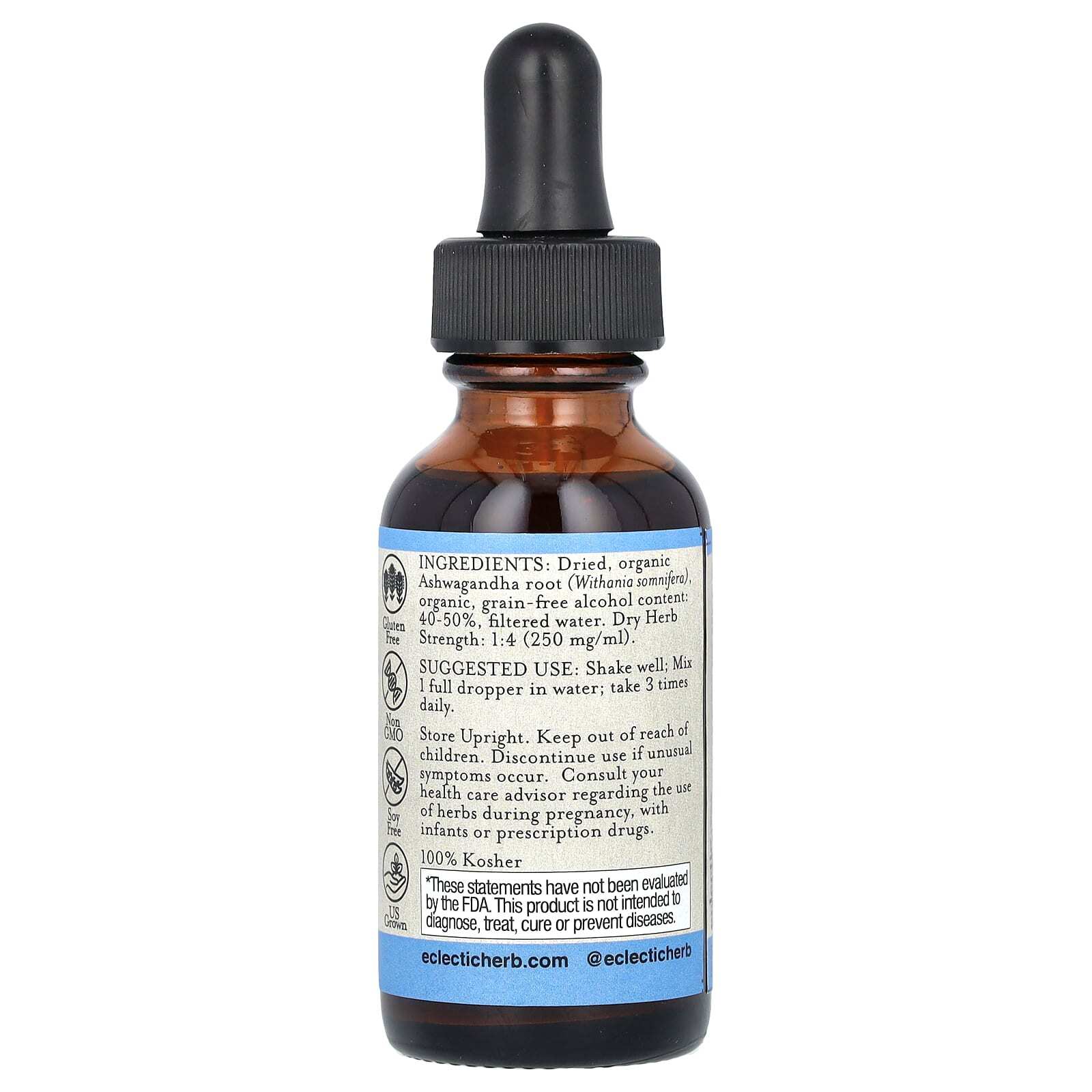 Сертифицированная органическая ашваганда, собранная при максимальной эффективности, и органический беззерновой спирт.