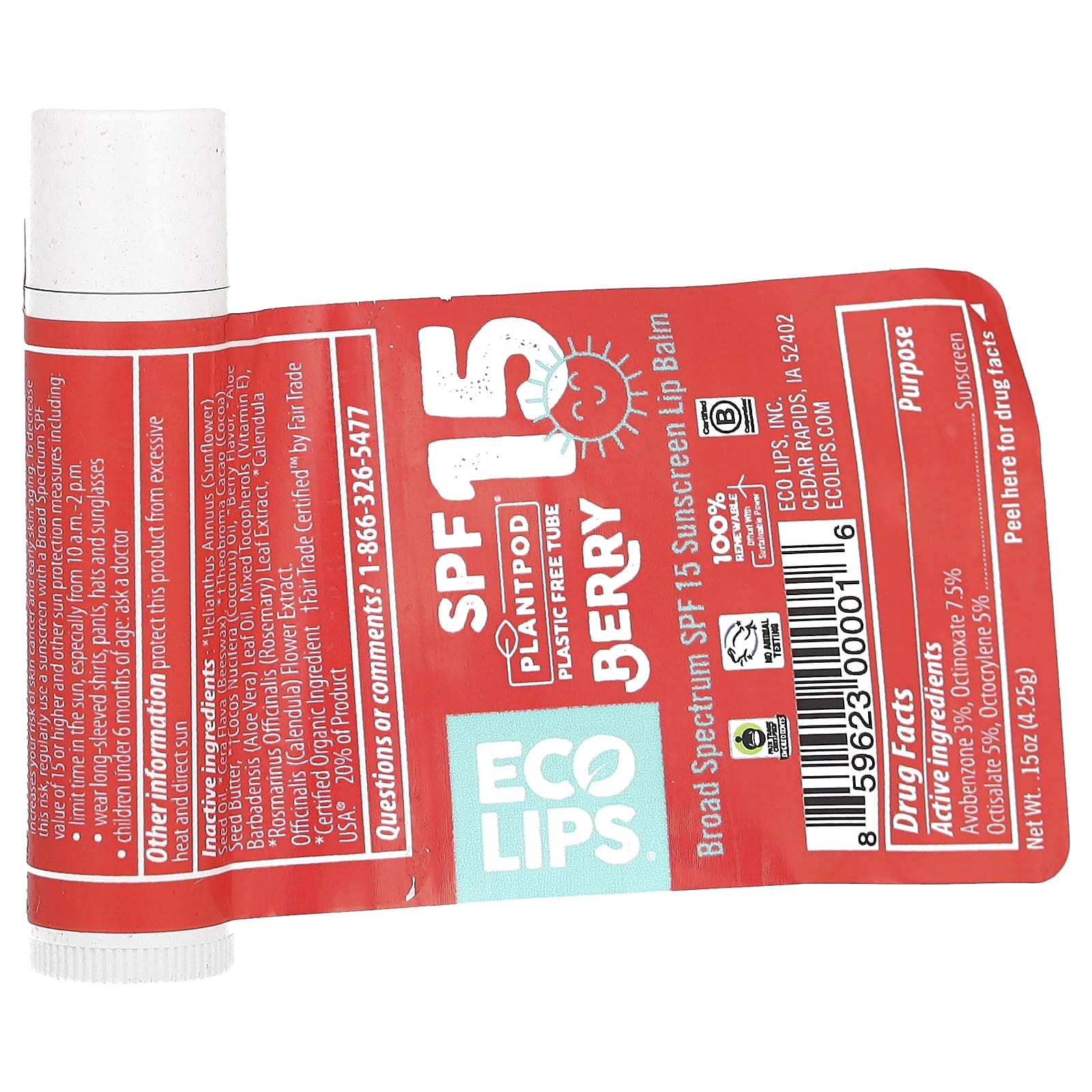 Собираетесь весело провести время на солнце? Защитите свои чувствительные губы с помощью ягодного бальзама для губ с солнцезащитным фактором SPF 15. Сочетание органического алоэ вера, органического кокосового масла и какао-масла, сертифицированного Fair Trade Certified™, увлажняет и успокаивает губы.