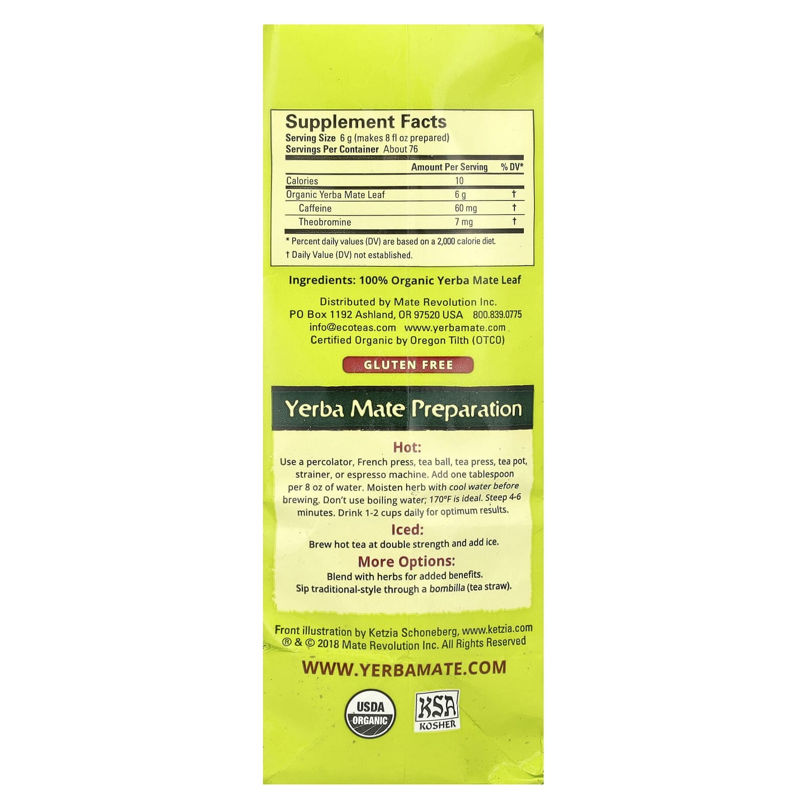 Чай мате йерба заваривают из листьев падуба, произрастающего в тропических лесах Южной Америки. Чай мате из EcoTeas сушат теплым воздухом, а не дымом, для получения чистого и мягкого вкуса.