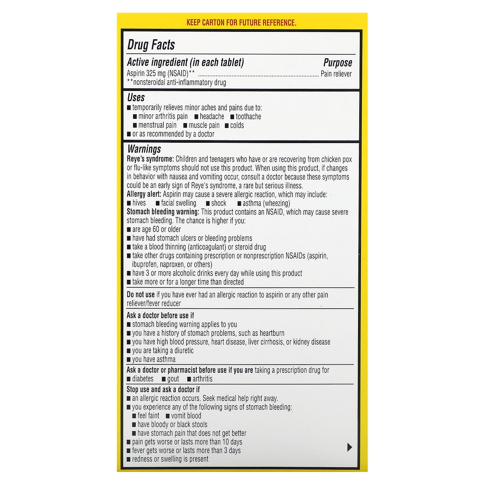 Не используйте данный продукт, если у вас когда-либо была аллергическая реакция на аспирин или любое другое обезболивающее или жаростойкое средство.