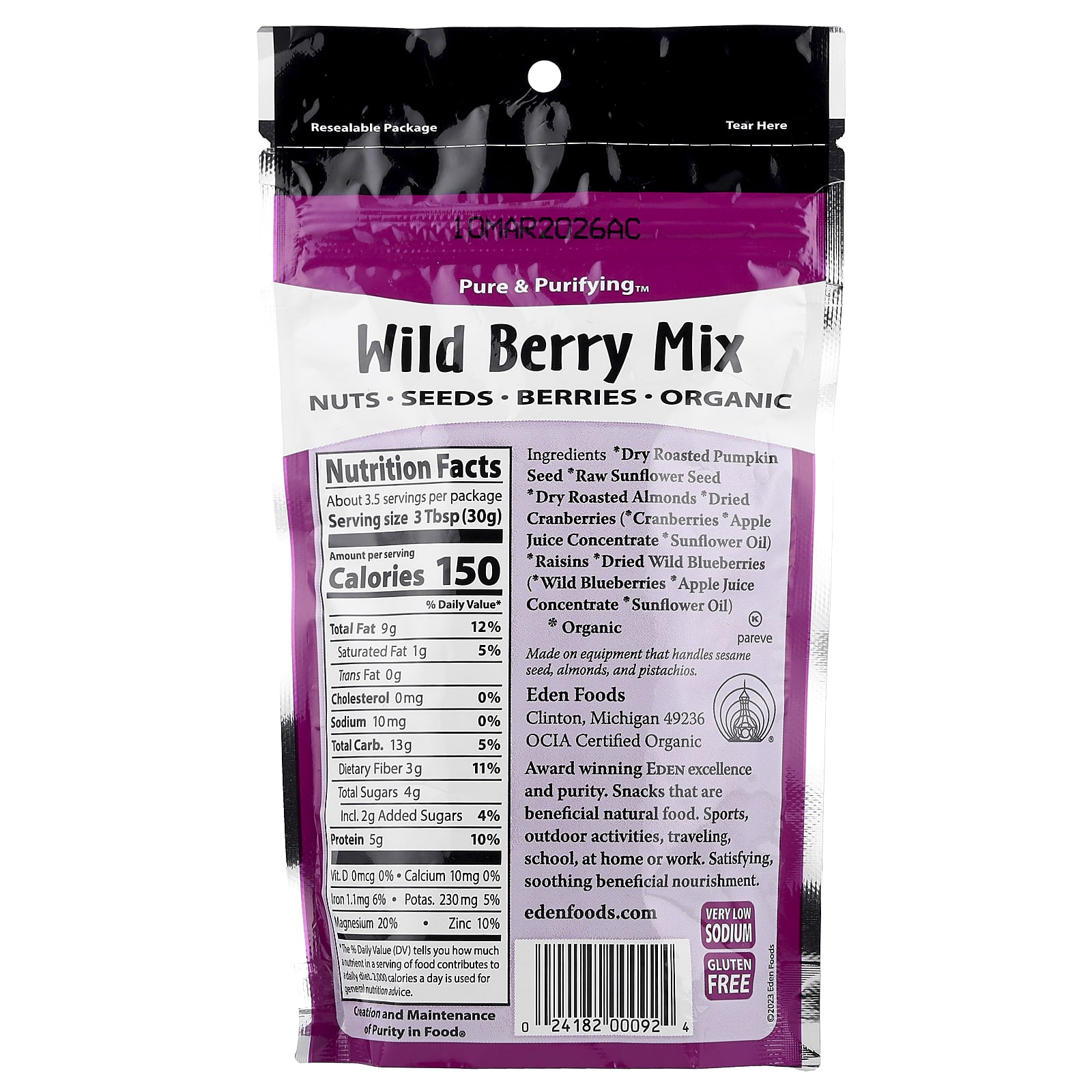 * Сухие обжаренные тыквенные семечки., * необработанные семена подсолнечника, * сухой обжаренный миндаль, * сушеная клюква (* клюква, * концентрированный яблочный сок, * подсолнечное масло), изюм*, сушеная дикорастущая голубика (* дикорастущая голубика, * концентрированный яблочный сок, * подсолнечное масло).