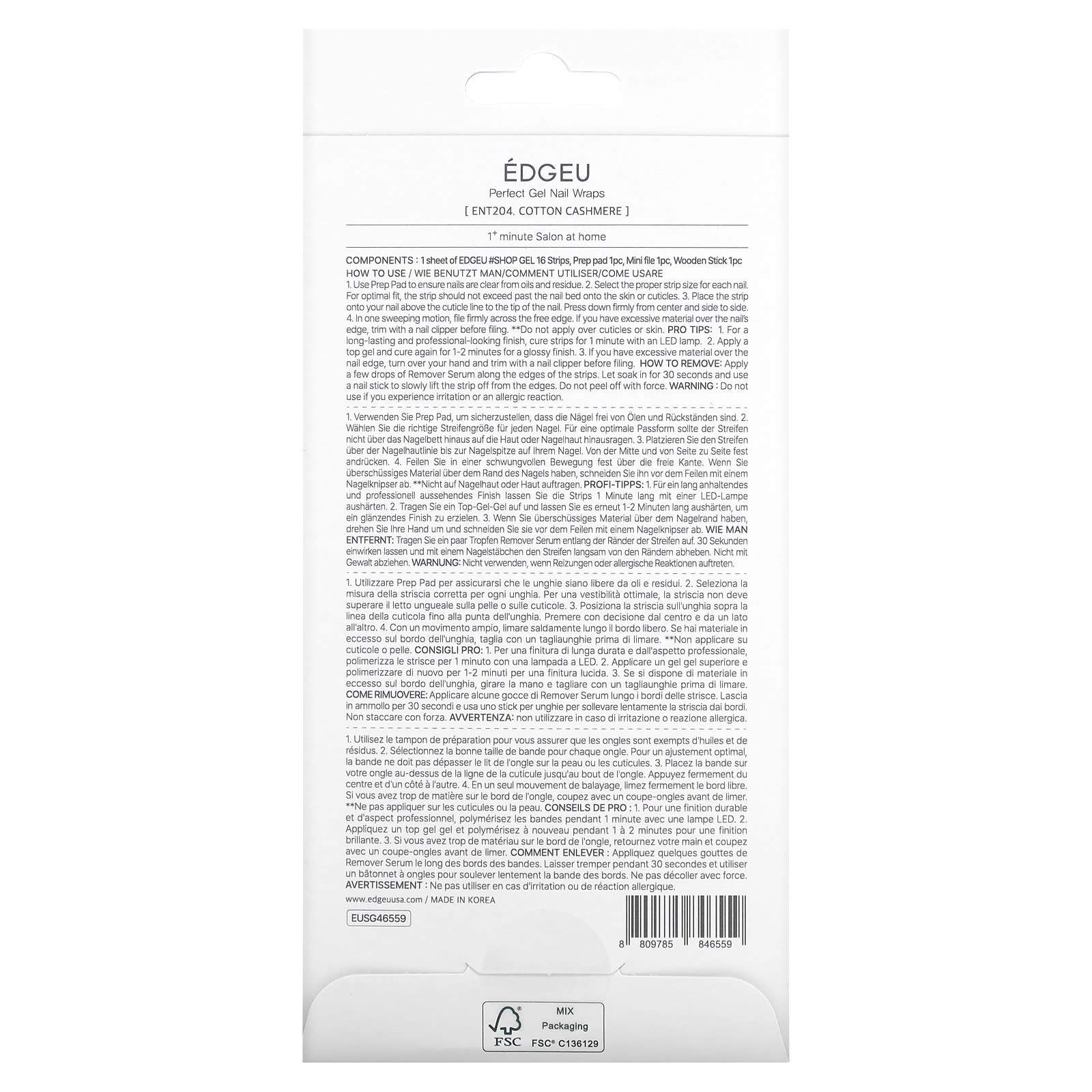 Edgeu, Perfect Gel Nail Wraps, ЛОР, 204 хлопок, кашемир, набор из 19 предметов