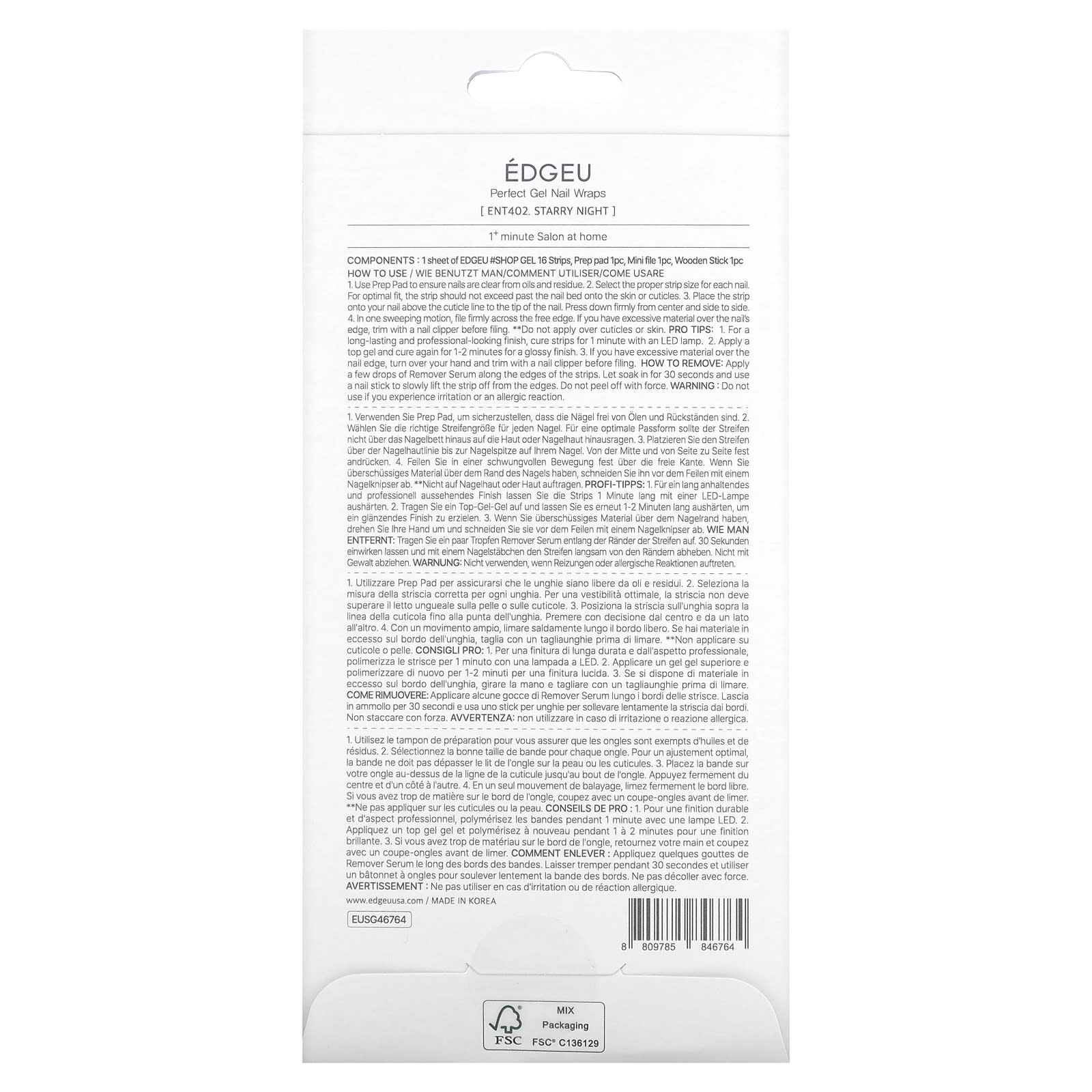 Edgeu, Perfect Gel Nail Wraps, ENT 402 Starry Night, набор из 19 предметов