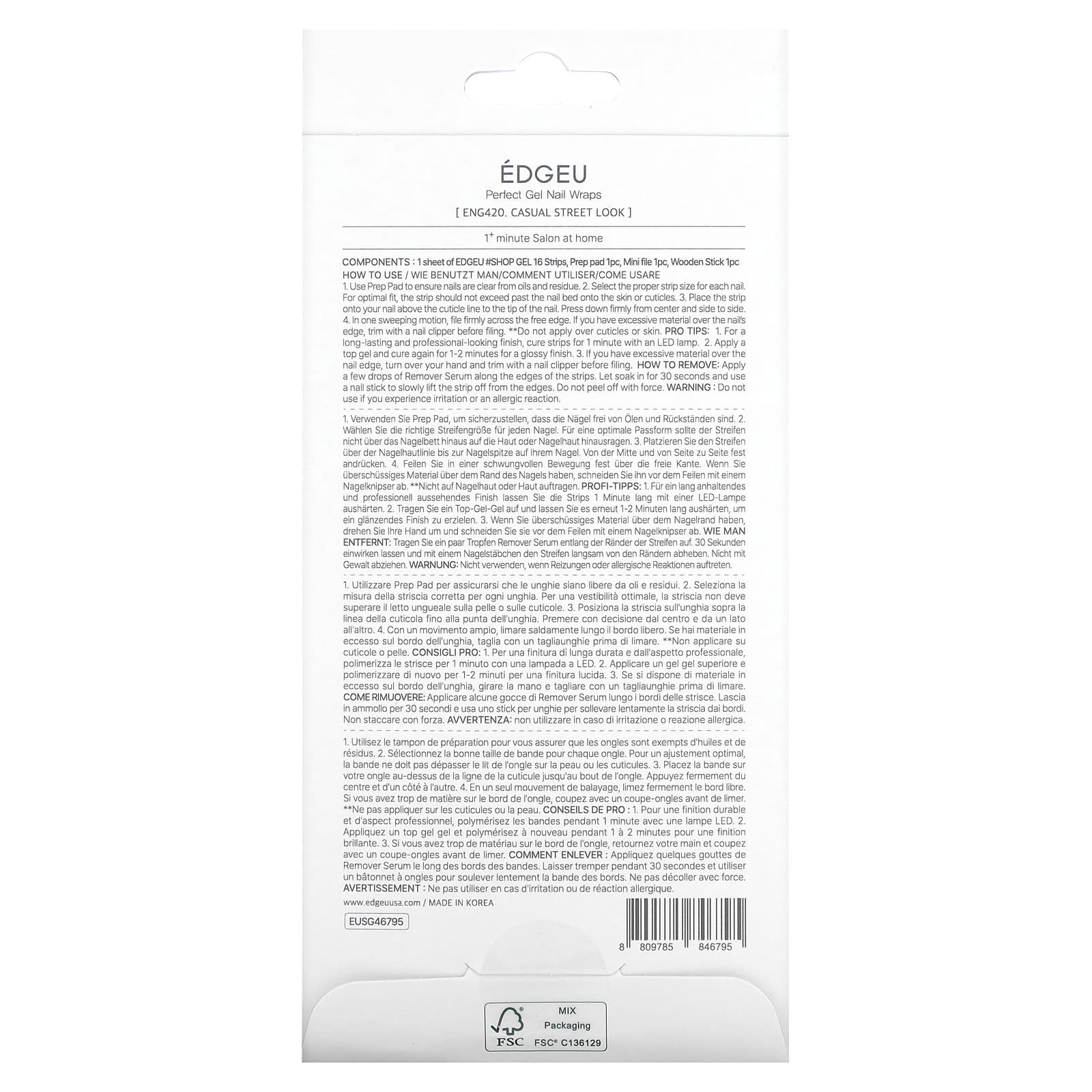 Edgeu, Идеальные гелевые обертывания для ногтей, ENG420, повседневный уличный образ, набор из 16 полосок