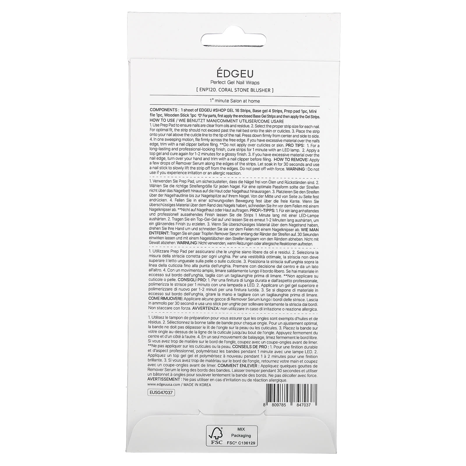 Edgeu, Perfect Gel Nail Wraps, гелевые наклейки для ногтей, дизайн ENP 120, коралловые с камушками, набор из 23 предметов