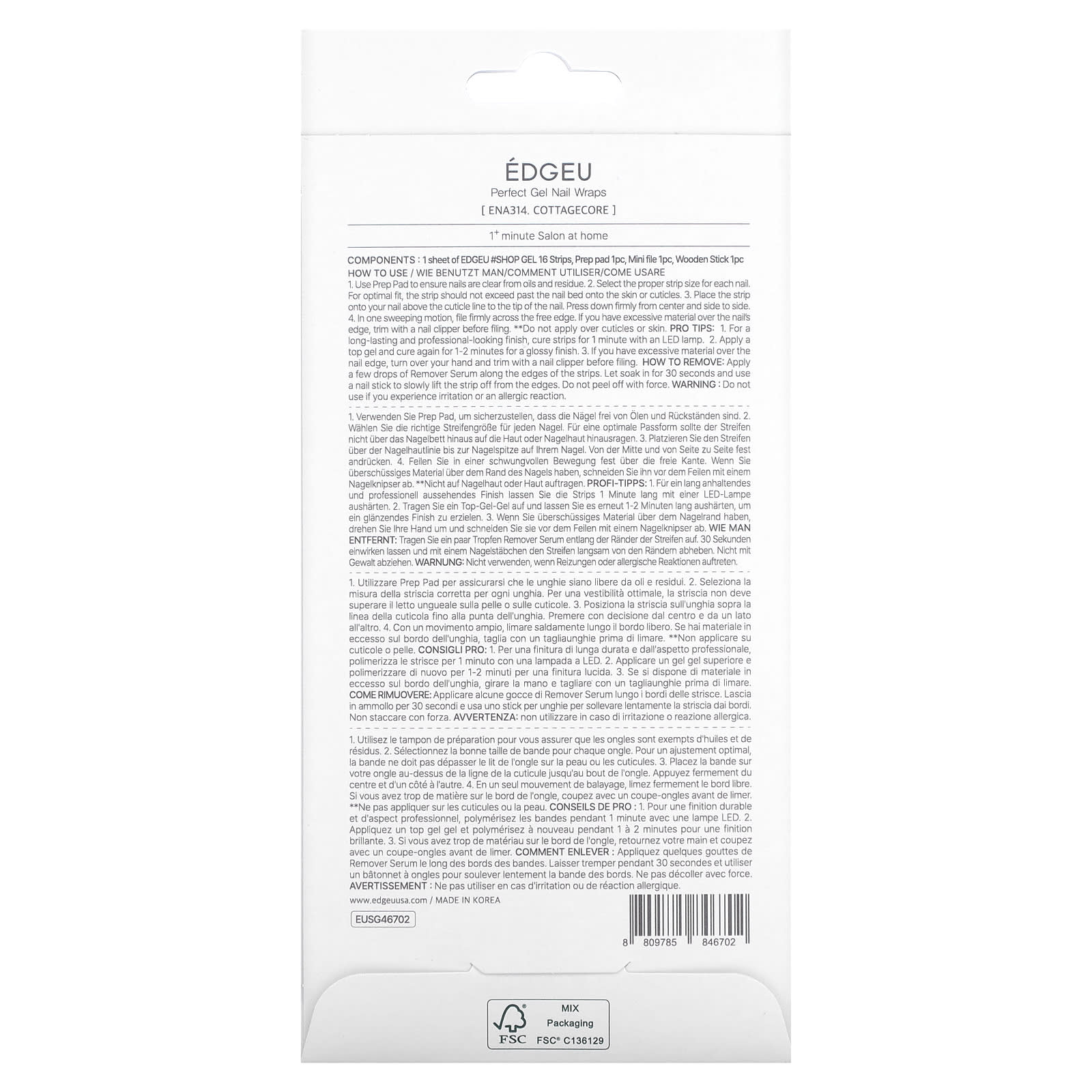 Edgeu, Perfect Gel Nail Wraps, ENA 314, Cottagecore, набор из 19 предметов