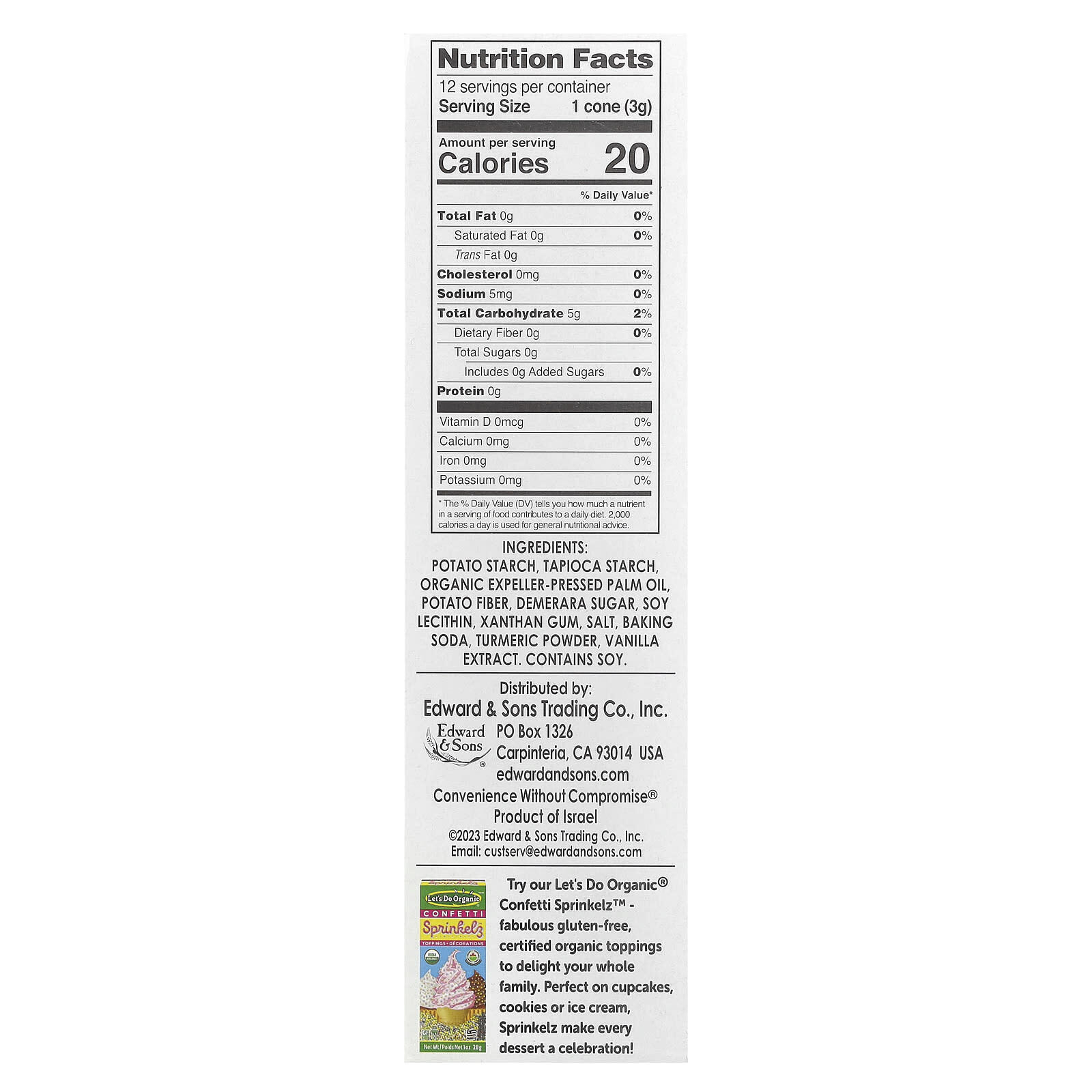 Конусы для мороженого Let's Do Gluten Free® без глютена изготовлены из картофельного крахмала и тапиокового крахмала и подслащены сахаром демерара, чтобы создать легкие хрустящие рожки без глютена, которые можно подобрать к любимому мороженому.