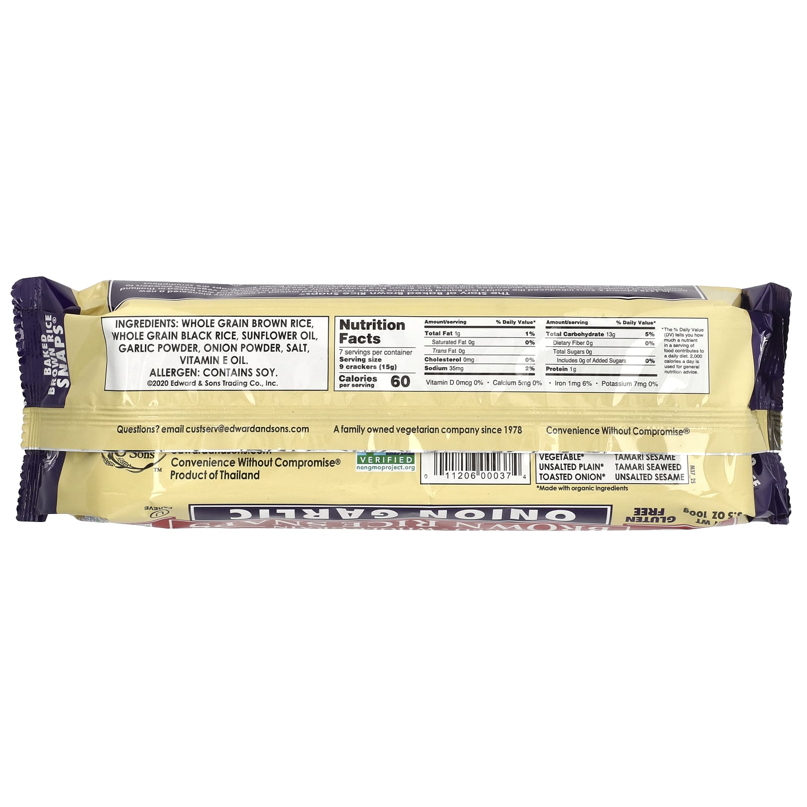 В 1978 году компания Edward & Sons представила первые в мире батончики из запеченного коричневого риса. Они стали первопроходцами нового поколения в производстве полезных для здоровья закусок из цельного зерна без глютена. Ассорти из коричневого риса, которые вы держите в руках, выпекали в Таиланде из цельнозернового коричневого риса, который мы очищаем и перемалываем в муку мелкого помола. Мы добавляем полезные семена, приправы или овощные порошки, чтобы приготовить кусочки из коричневого риса. Исключительно хрустящие и вкусные батончики из запеченного коричневого риса от Edward & Sons восхитительны прямо из упаковки и достаточно элегантны, чтобы их можно было развлечь. Подавайте запеченные батончики из коричневого риса с любимыми дип-соусами или добавьте к ним намазку, чтобы украсить любое мероприятие. Наслаждайтесь!
