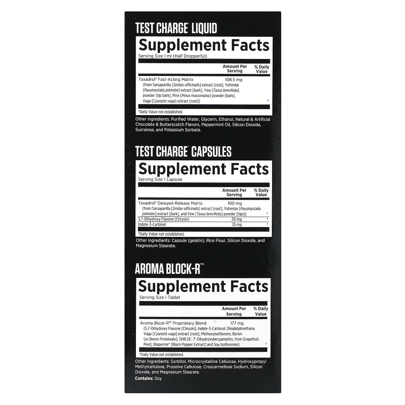 | Запатентованная смесь Aroma Block-R™ 5,7-дигидроксифлавон (хризин), индол-3-карбинол, дииндолилметан, экстракт корня вага [Cyanotis vaga], метоксиизофлавон, бор [в виде протеината бора], K-DHB [6', 7'-дигидроксибергамоттин из грейпфрута кожуры], Bioperine® [экстракт черного перца] и изофлавоны сои) | 177 мг | † |