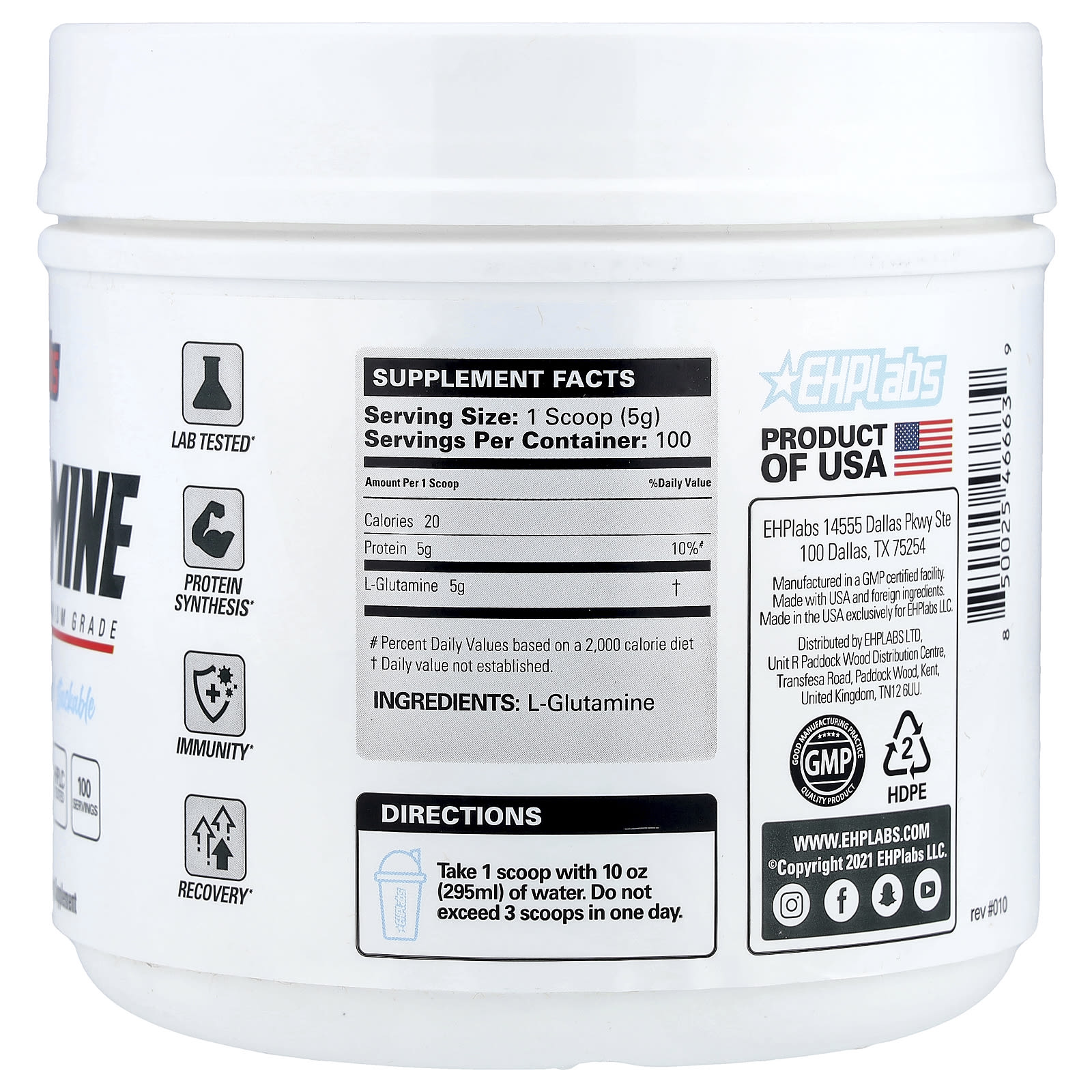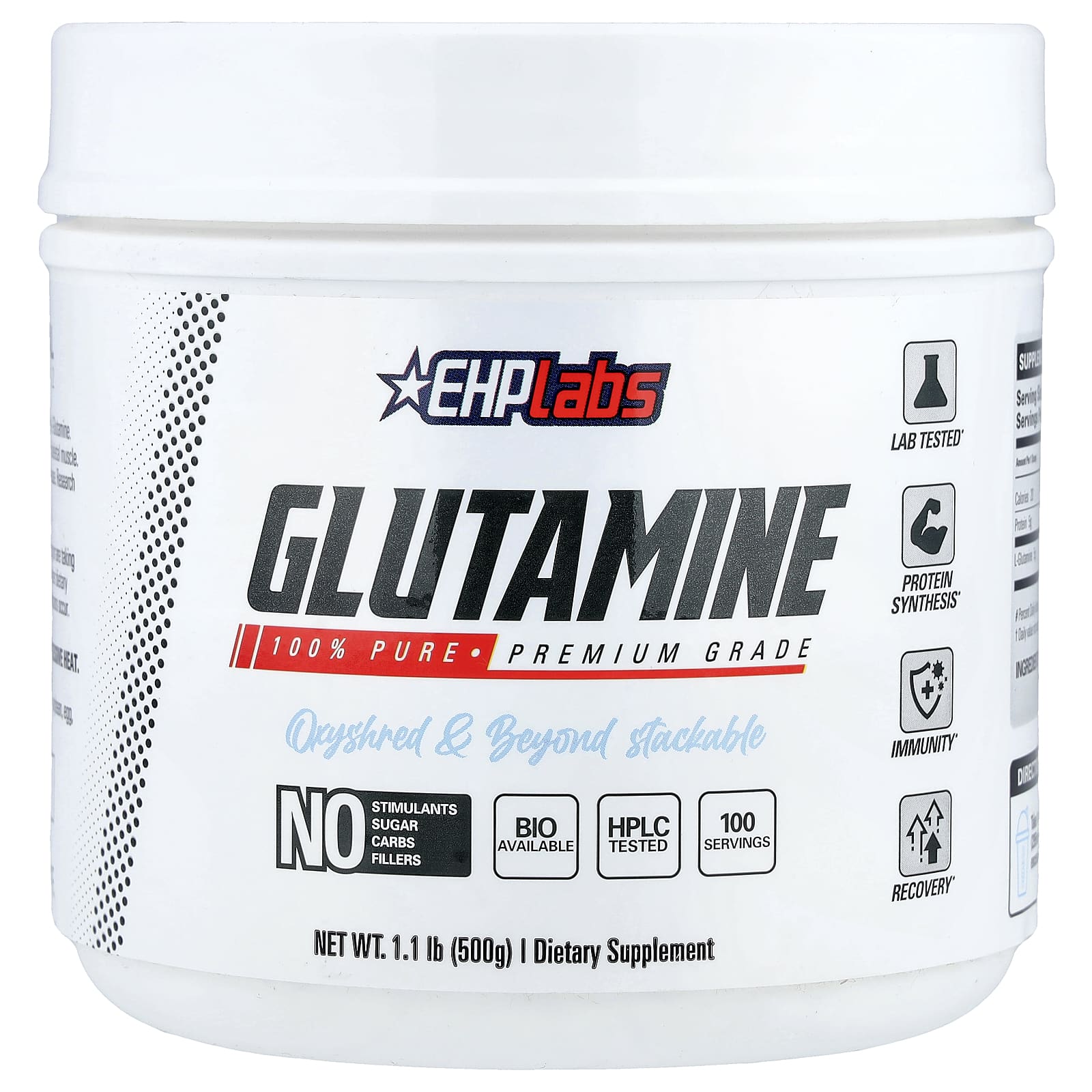 L-глютамин EHPlabs протестирован с помощью ВЭЖХ, чтобы гарантировать, что это L-глютамин высшего качества фармацевтической степени чистоты.L-глютамин - самая распространённая аминокислота в мышечных клетках, составляющая более 60% скелетных мышц.L-глютамин способствует синтезу белка из сухой мышечной массы и естественному высвобождению гормона роста.Исследования также показали, что L-глютамин способствует здоровью кишечника и укрепляет иммунитет.