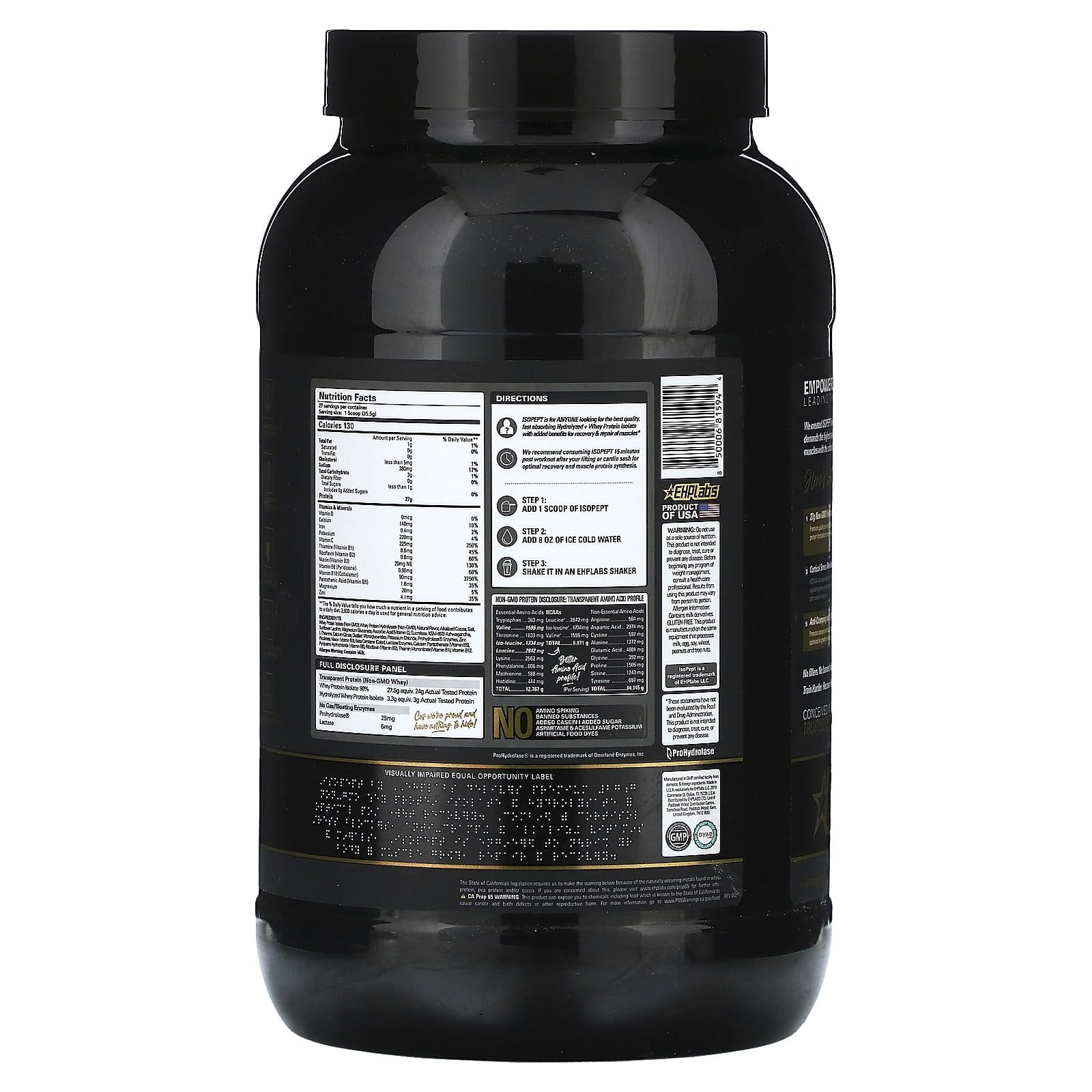 1,77 г: Без ГМО. Гидролизованный + WPI - предварительно переваренный, быстро усваиваемый протеин премиального качества, предназначенный для использования после тренировки