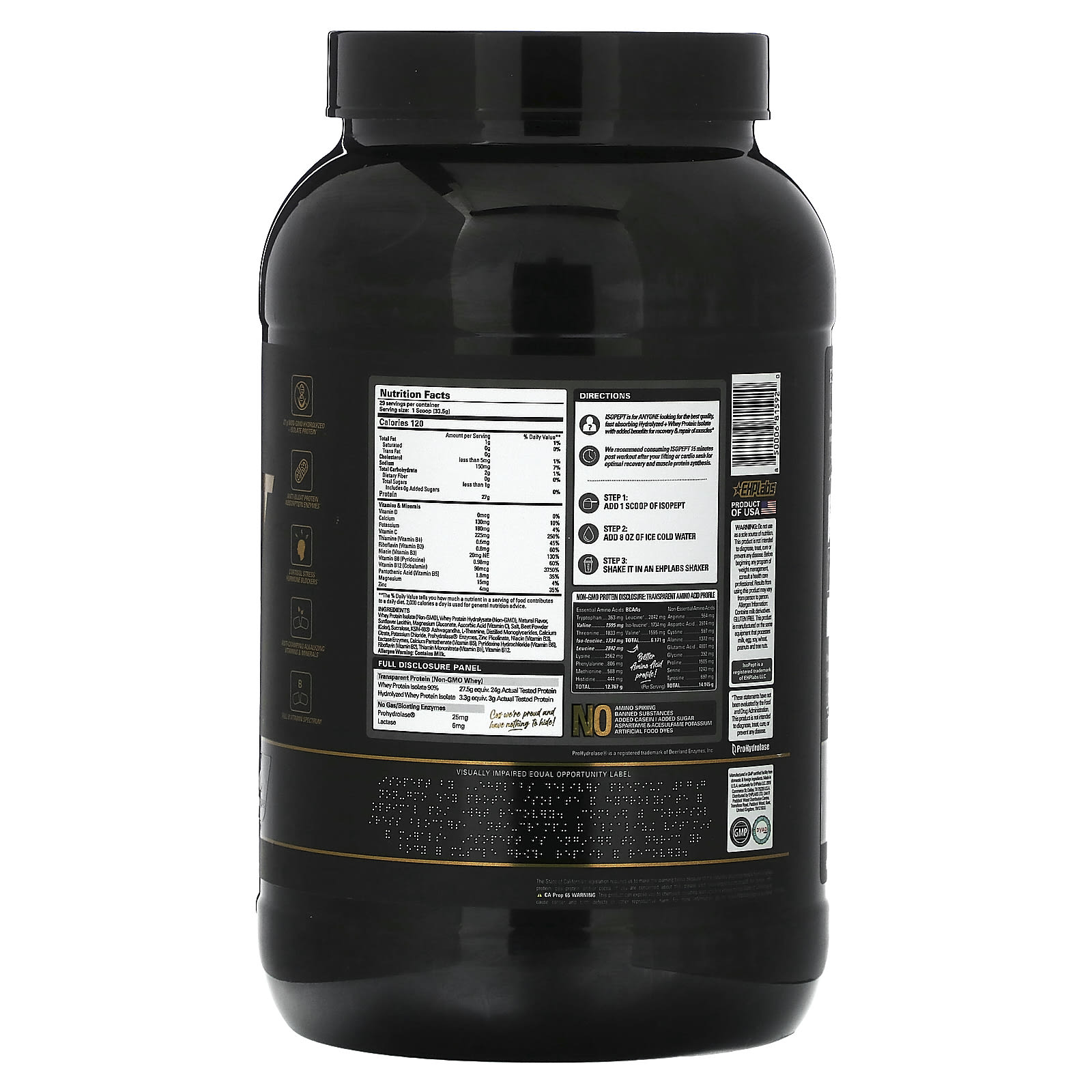 1,77 г: Без ГМО. Гидролизованный + WPI - предварительно переваренный, быстро усваиваемый протеин премиального качества, предназначенный для использования после тренировки