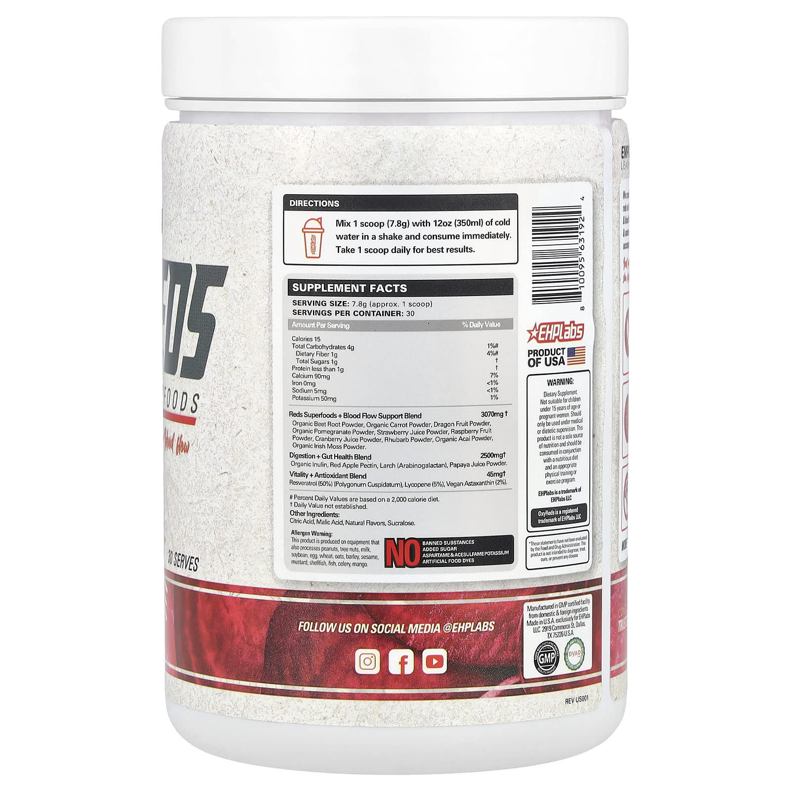 | Reds Superfoods + смесь для поддержки кровотока Порошок из органической свеклы, порошок из органической моркови, порошок из плодов дракона, порошок из органического граната, порошок из клубничного сока, порошок из плодов малины, порошок из клюквенного сока, порошок из ревеня, порошок из органического асаи, порошок из органического ирландского мха | 3070 мг | † |