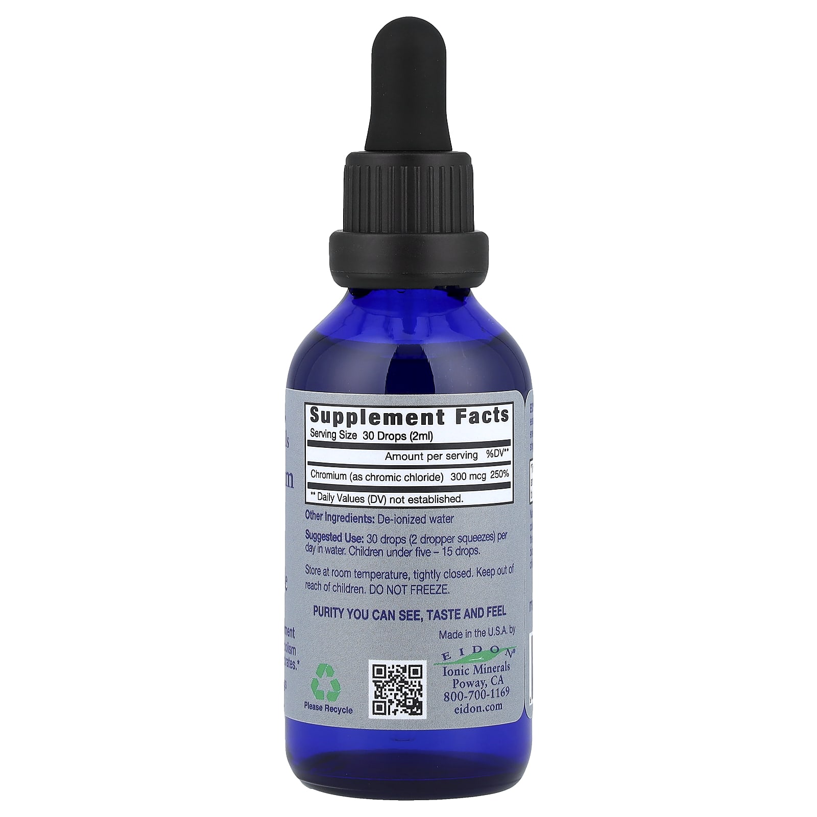 Хром EIDON: Достаточный уровень хрома необходим для поддержания уровня сахара в крови и выработки энергии. Хром может быть истощен из-за стресса, большого потребления сахара и рафинированной пищи.