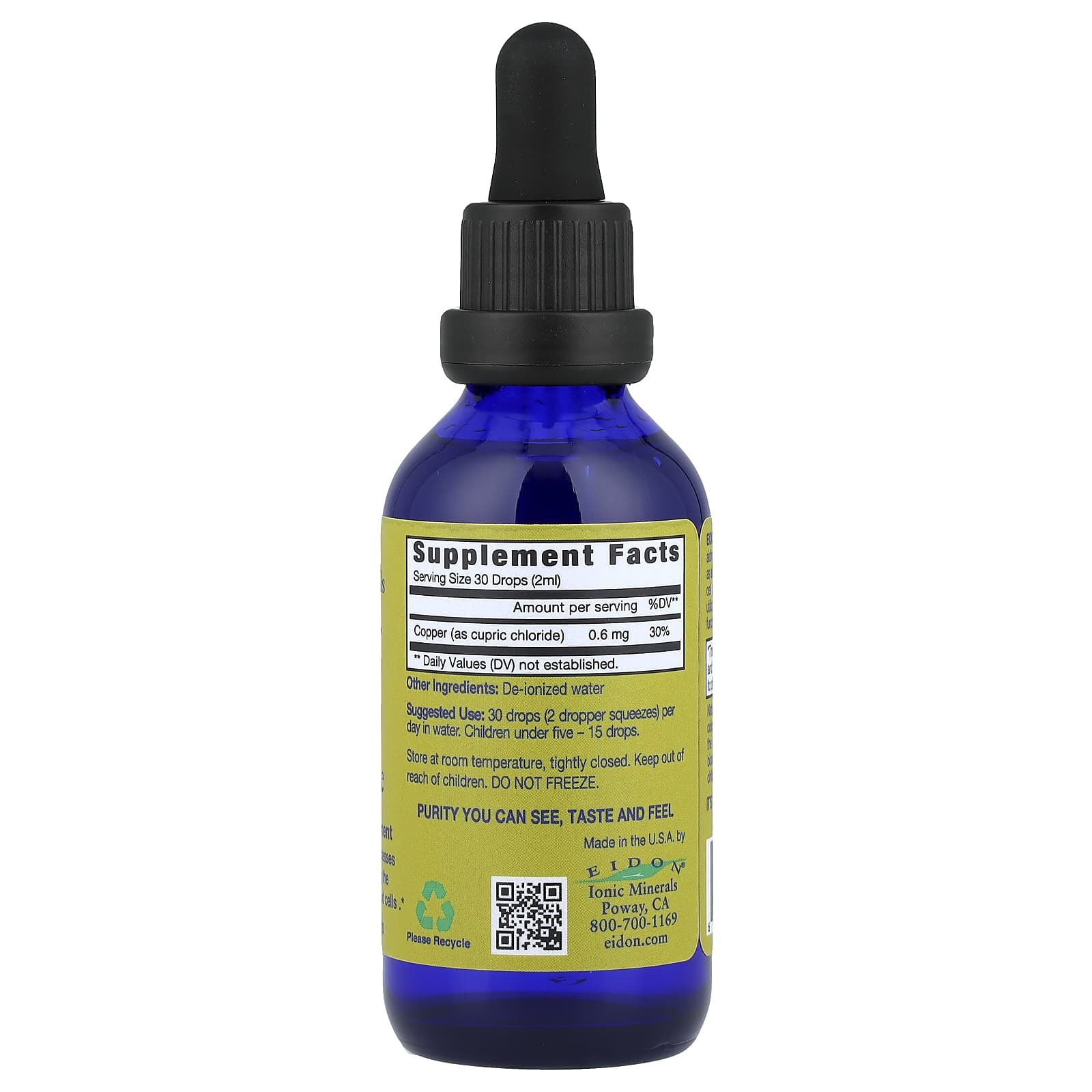 Eidon Copper взаимодействует с витамином С, образуя эластин, способствующий укреплению вен и артерий, а также всей соединительной ткани. Медь участвует в выработке эритроцитов и необходима для всасывания и использования железа. Он необходим для многих физиологических функций, включая поддержку здоровья щитовидной железы.