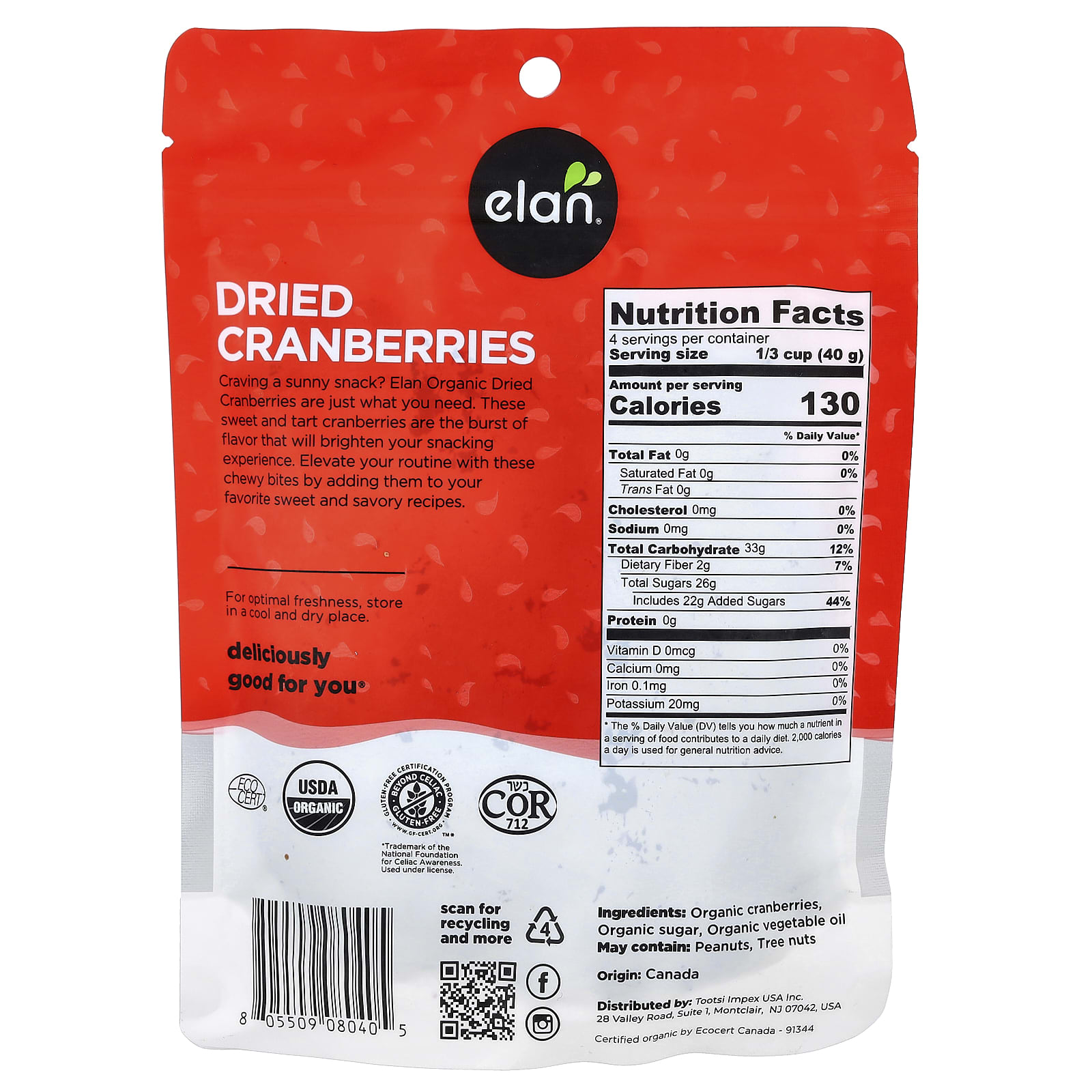 Хотите солнечный снек? Органическая сушеная клюква Elan — это то, что вам нужно. Эта сладкая и терпкая клюква — взрыв вкуса, который украсит ваш снек. Эти жевательные кусочки украсят ваш рацион, добавив их в ваши любимые сладкие и соленые блюда.