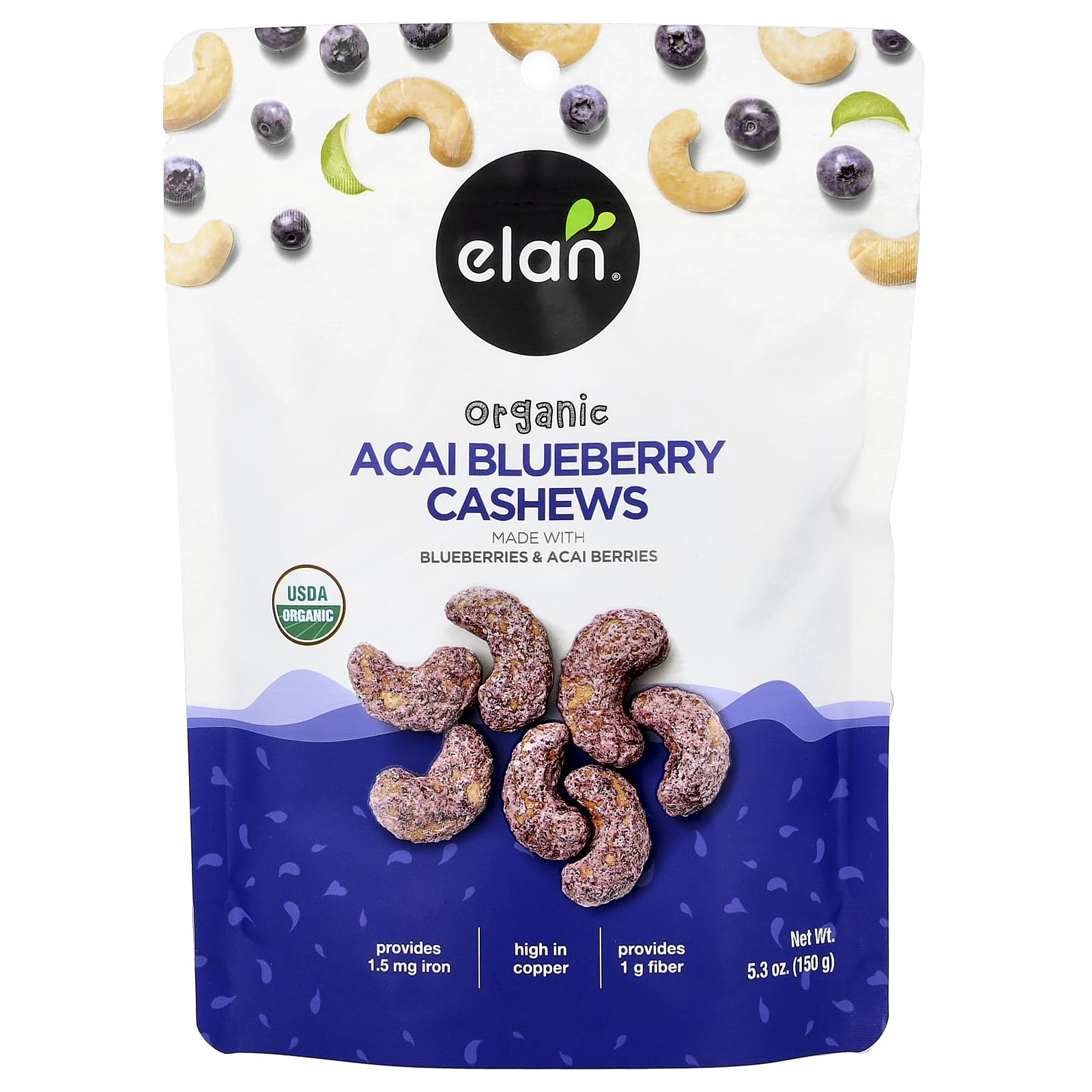 Органические кешью асаи и голубика от Elan сочетают в себе слегка обжаренные кешью с пикантной черникой и порошком асаи. Ягоды асаи получают из ягодной пальмы асаи, произрастающей в тропических лесах Южной Америки. Терпкий вкус ягод асаи и сладость черники создают идеальную фруктовую оболочку для жареных кешью. Попробуйте добавить в полезные смузи кешью с черникой асаи или съесть их небольшими порциями в качестве вкусной закуски. Добавьте их в летние салаты или в свой любимый рецепт печенья с кешью!