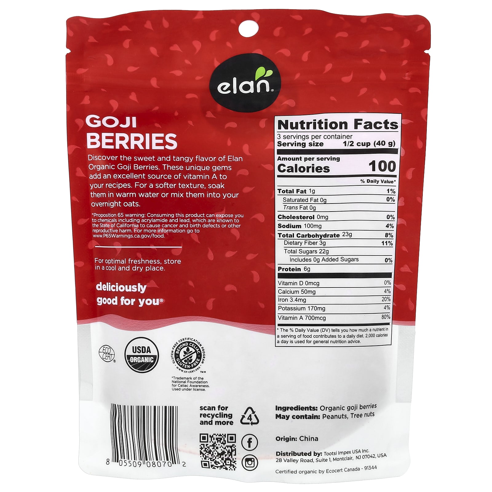 Откройте для себя сладкий и терпкий вкус органических ягод годжи от Elan. Эти уникальные семена станут отличным источником витамина А в ваших блюдах.