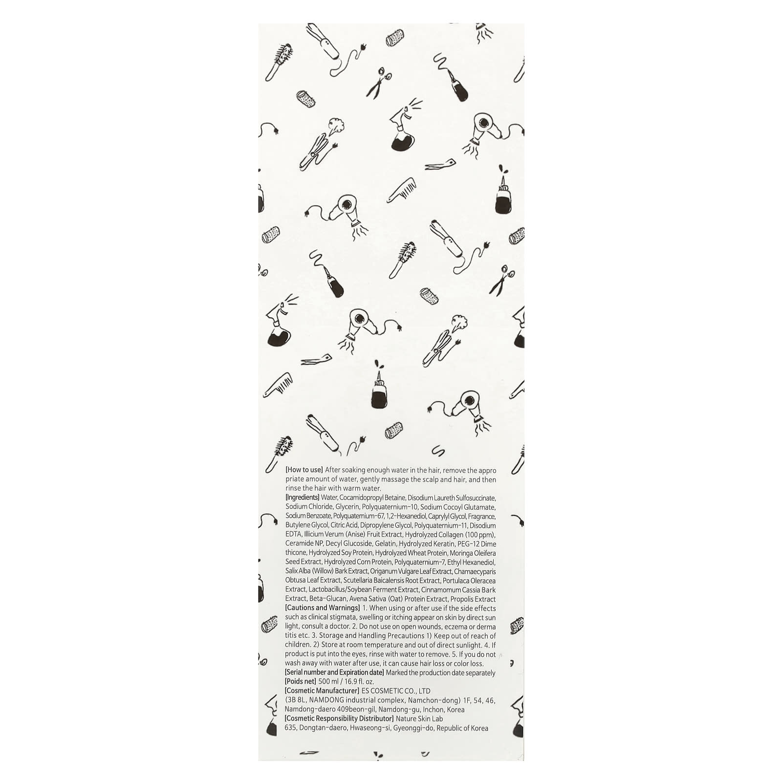 Вода, кокамидопропилбетаин, динатрия лаурет сульфосукцинат, хлорид натрия, глицерин, поликватерниум-10, кокоил глутамат натрия, бензоат натрия, поликватерниум-67,1,2-гександиол, каприлилгликоль, отдушка, бутиленгликоль, лимонная кислота, дипропиленгликоль, поликватерниум-11, двунатриевая ЭДТК, экстракт плодов аниса звездчатого (Illicium verum), гидролизованный коллаген (100 част. / млн), керамид NP, децил глюкозид, желатина, гидролизованный кератин, ПЭГ-12 диметикон, гидролизованный белок из сои, гидролизованный протеин из пшеницы, экстракт семян моринги (Moringa oleifera), гидролизованный кукурузный белок, поликватерниум-7, этил гександиол, экстракт коры ивы (Salix alba), экстракт листьев орегано (Origanum vulgare), экстракт листьев кипарисовика (Chamaecyparis obtusa), экстракт корня шлемника (Scutellaria baicalensis), экстракт портулака огородного (Portulaca oleracea), лактобактерии (Lactobacillus) /ферментированный экстракт соевых бобов, экстракт коры кассии (Cinnamomum cassia), бета-глюкан, протеиновый экстракт овса (Avena sativa), экстракт прополиса.