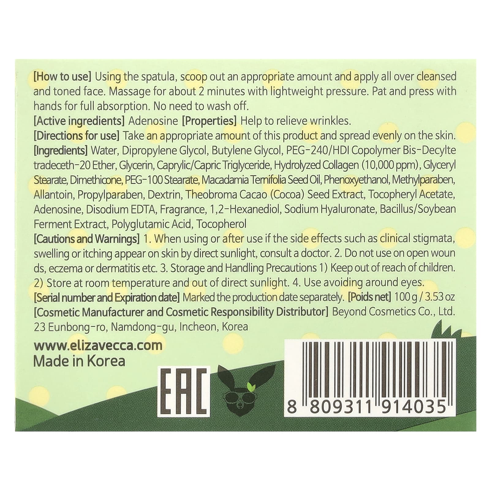 Гидролизованный коллаген, вода, дипропиленгликоль, ПЭГ-240 / Hdi-сополимер бис-децилтетрадекат-20-эфир, глицерин, стеарат глицерилстеарата / пег-100, каприловый / каприновый триглицерид, масло макадамии тернифолия, диметикон, метилпарабен, гиалуронат натрия, феноксиэтанол, аллантоин, экстракт семян какао (какао), токоферилацетат, полиглутаминовую кислоту, экстракт фермента бациллы / сои, пропилпарабен, аденозин, динатрий эдта, аромат.