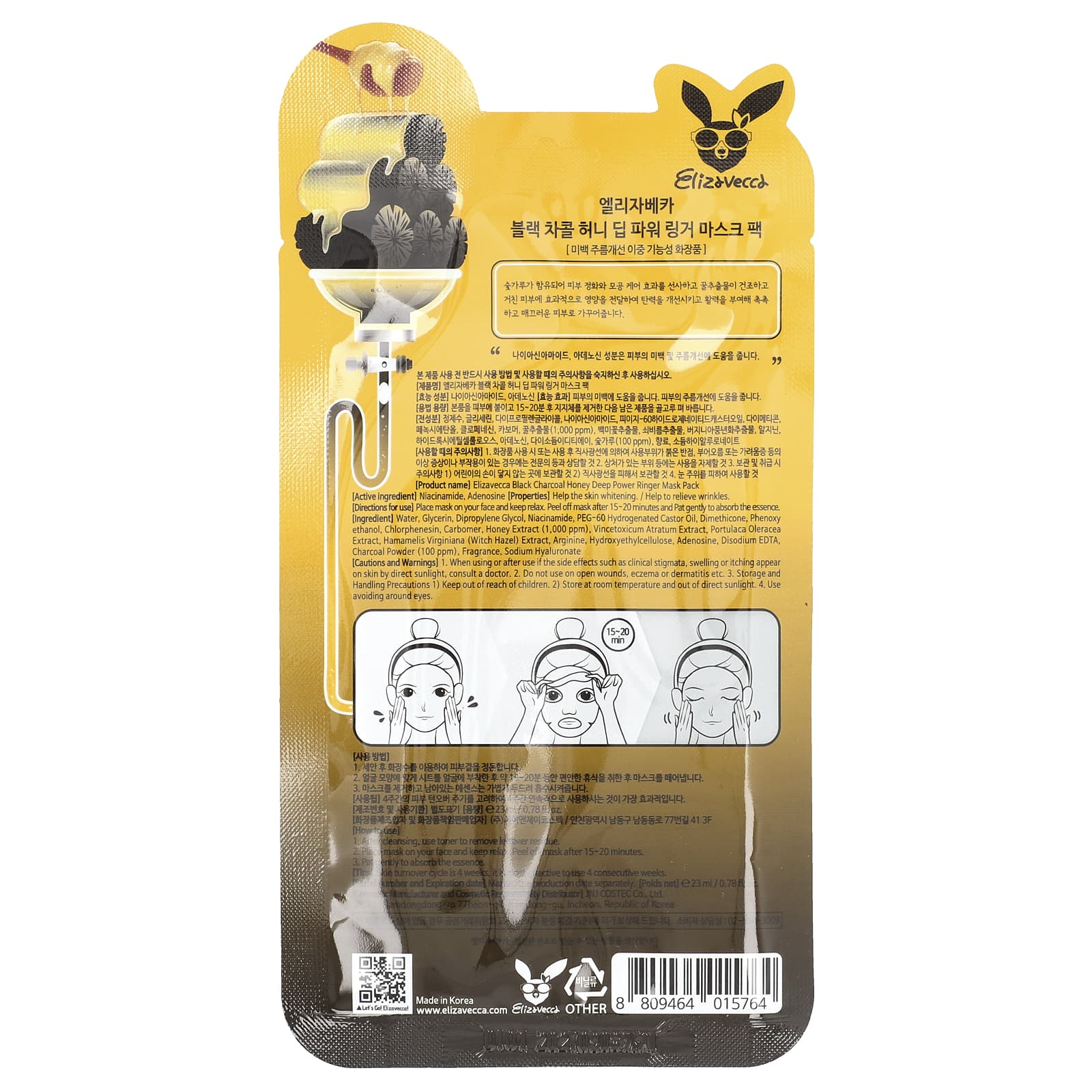 Вода, глицерин, дипропиленгликоль, никотинамид, ПЭГ-60 гидрогенизированное касторовое масло, диметикон, феноксиэтанол, хлорфенезин, карбомер, экстракт меда (1000 част. / млн), экстракт ластовня черноватого (Vincetoxicum atratum), экстракт портулака огородного (Portulaca oleracea), экстракт гамамелиса (Hamamelis virginiana), аргинин, гидроксиэтилцеллюлоза, аденозин, двунатриевая ЭДТК, древесный уголь (100 част. / млн), отдушка, гиалуронат натрия.