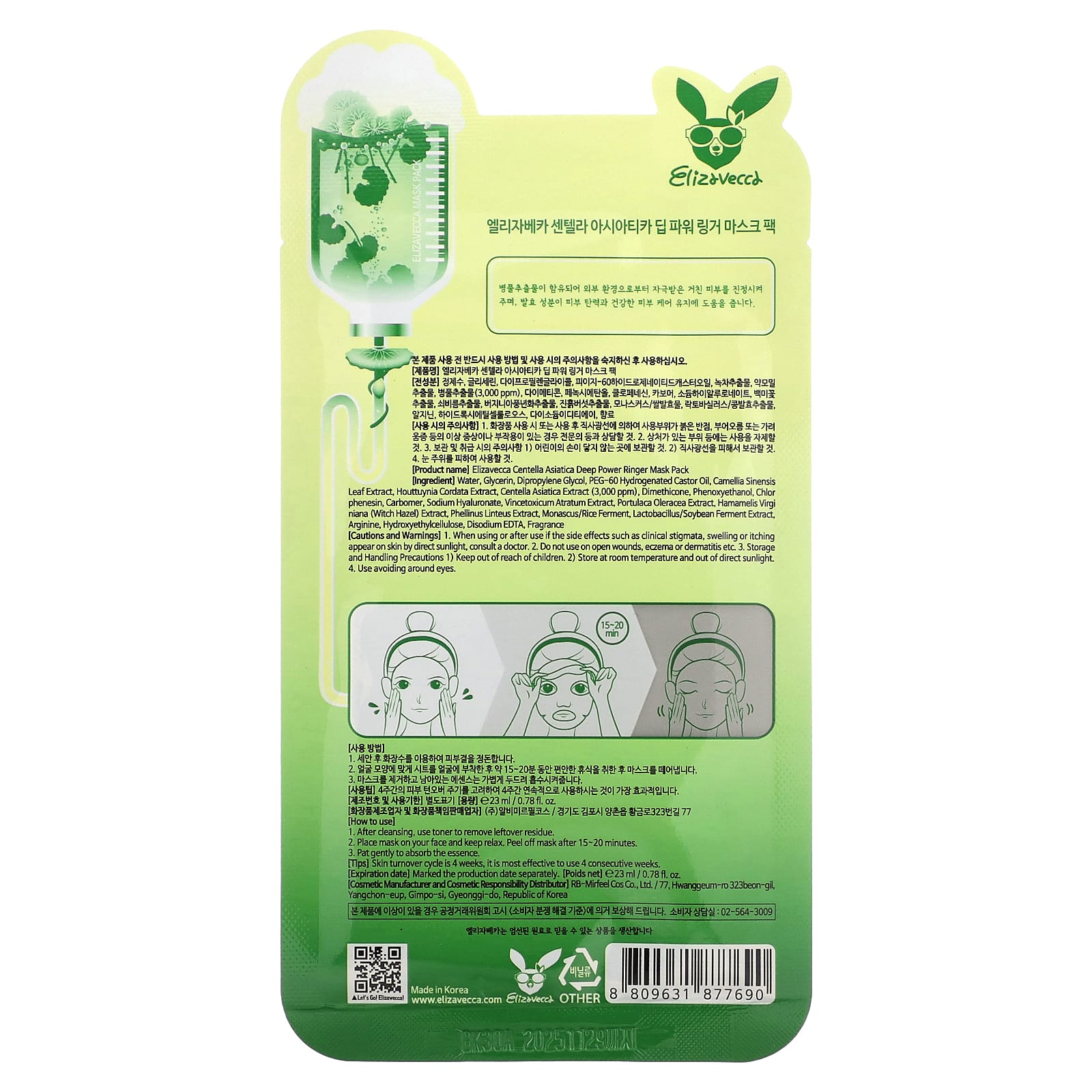 Вода, глицерин, дипропиленгликоль, ПЭГ-60 гидрогенизированное касторовое масло, экстракт листьев зеленого чая (Camellia sinensis), экстракт хауттюйнии сердцевидной (Houttuynia cordata), экстракт центеллы азиатской (3000 част. / млн), диметикон, феноксиэтанол, хлорфенезин, карбомер, гиалуронат натрия, экстракт ластовня черноватого (Vincetoxicum atratum), экстракт портулака огородного (Portulaca oleracea), экстракт гамамелиса (Hamamelis virginiana), экстракт санхвана (Phellinus linteus), фермент из монаска / риса, ферментированный экстракт лактобактерии и соевых бобов, аргинин, гидроксиэтилцеллюлоза, двунатриевая ЭДТК, отдушка.