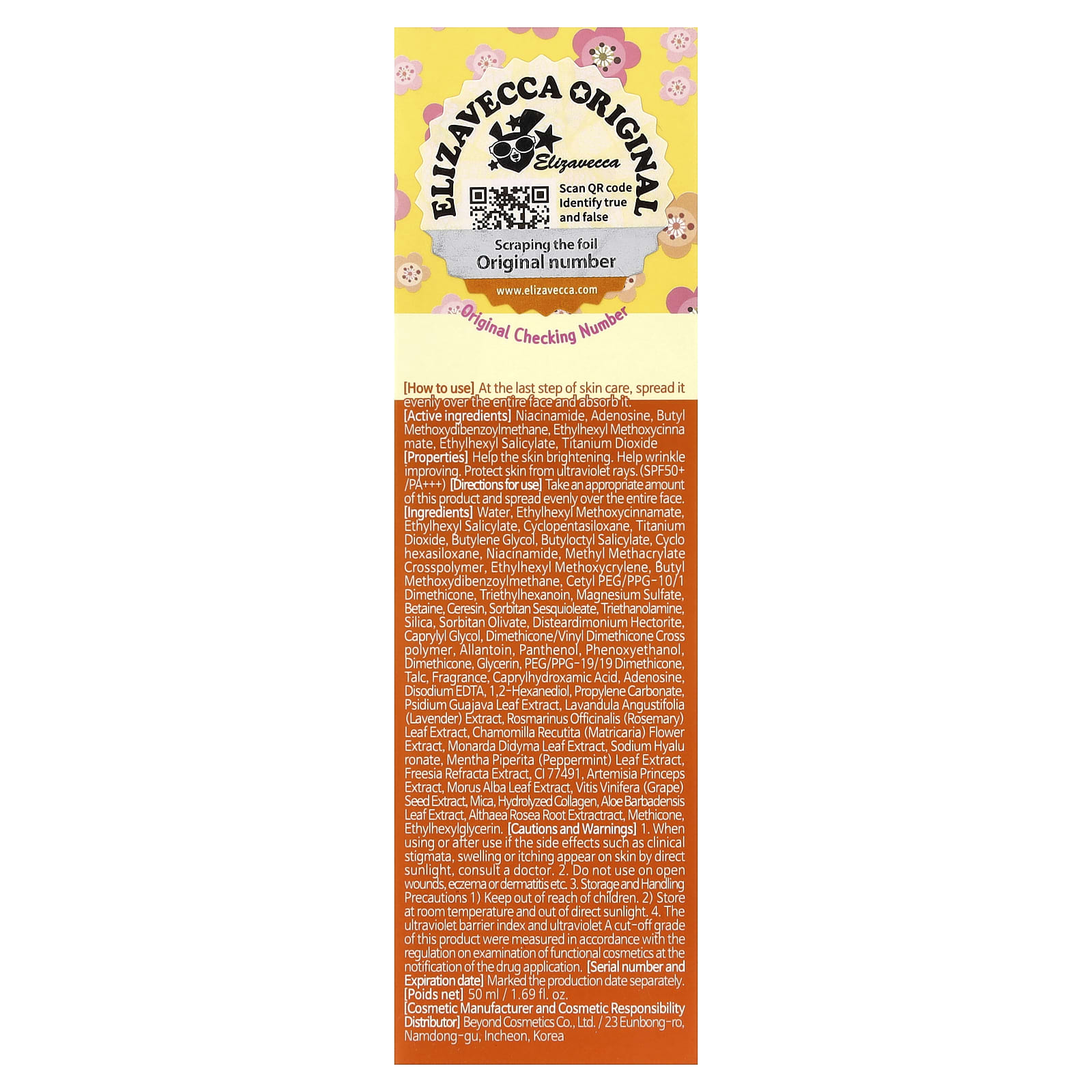 [Свойства] Осветляет кожу. Помогает уменьшить морщины. Защищать кожу от ультрафиолетовых лучей. (SPF50+/PA+++)