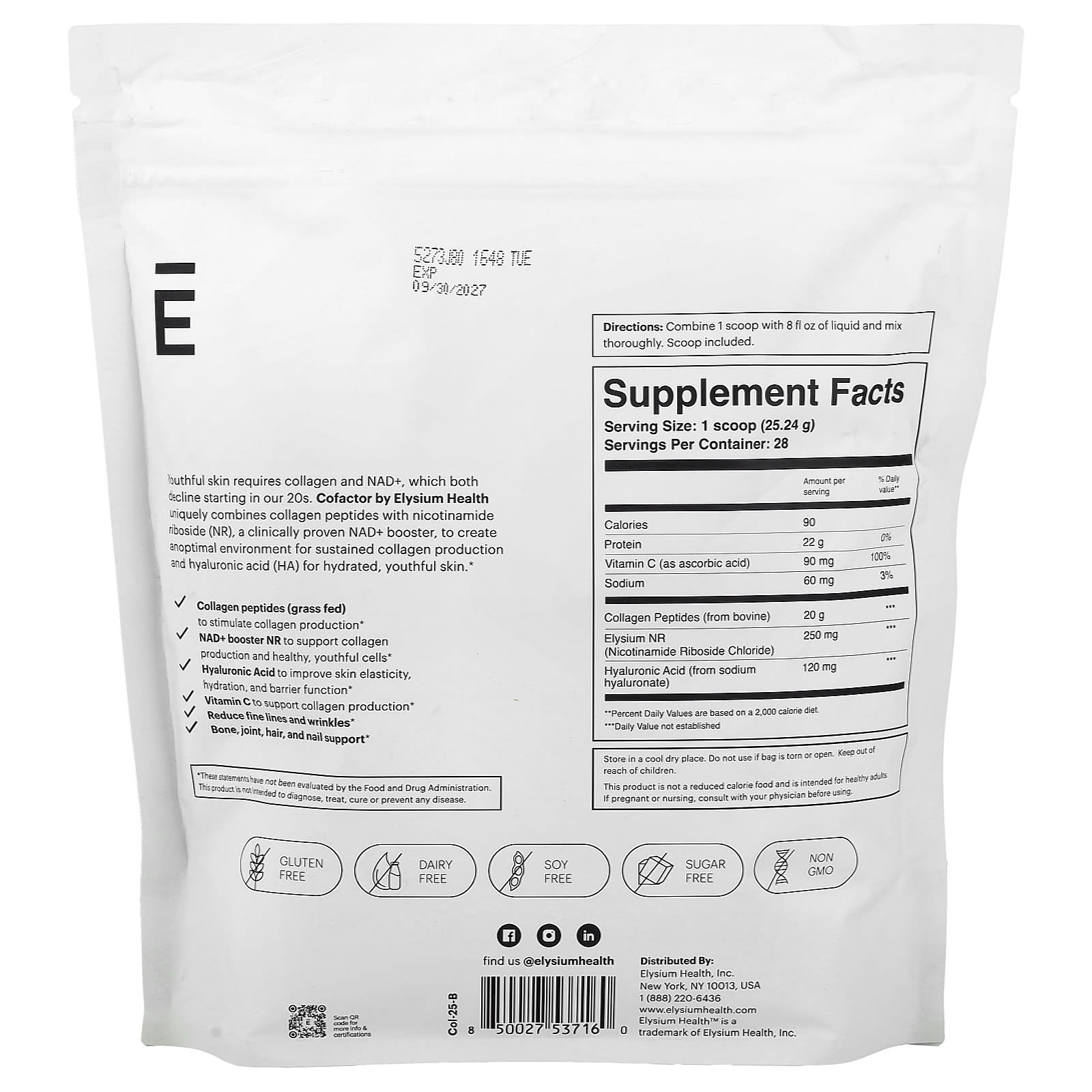 Для молодой кожи необходим коллаген и НАД+, уровень которых снижается после 20 лет. Кофактор от Elysium Health содержит уникальное сочетание пептидов коллагена с никотинамид рибозидом (NR), клинически подтвержденным стимулятором НАД+, который создает оптимальную среду для устойчивой выработки коллагена и гиалуроновой кислоты (ГК) для увлажнения и молодости кожи.