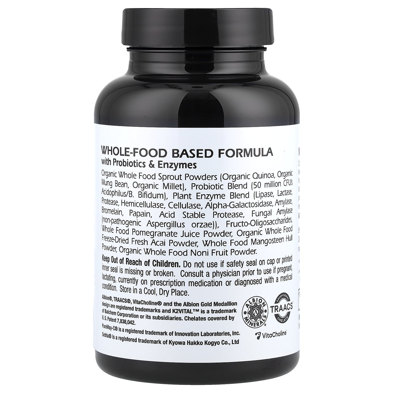 порошки из органических цельных ростков (органическое киноа, органический маш, органическое просо), смесь пробиотиков (50 млн ацидофилус/бактерий B. Bifidum), смесь растительных ферментов (липаза, лактаза, протеаза, гемицеллюлаза, целлюлаза, альфа-галактозидаза, амилаза, бромелаин, папаин, кислотостойкая протеаза, грибная амилаза (непатогенный аспергилл или аспергилл [Aspergillus orzae]), фруктоолигосахариды, цельнопищевой гранат порошок из сока, органический лиофилизированный порошок из цельных продуктов, порошок из цельной шелухи мангостана, порошок из органических цельных плодов нони.