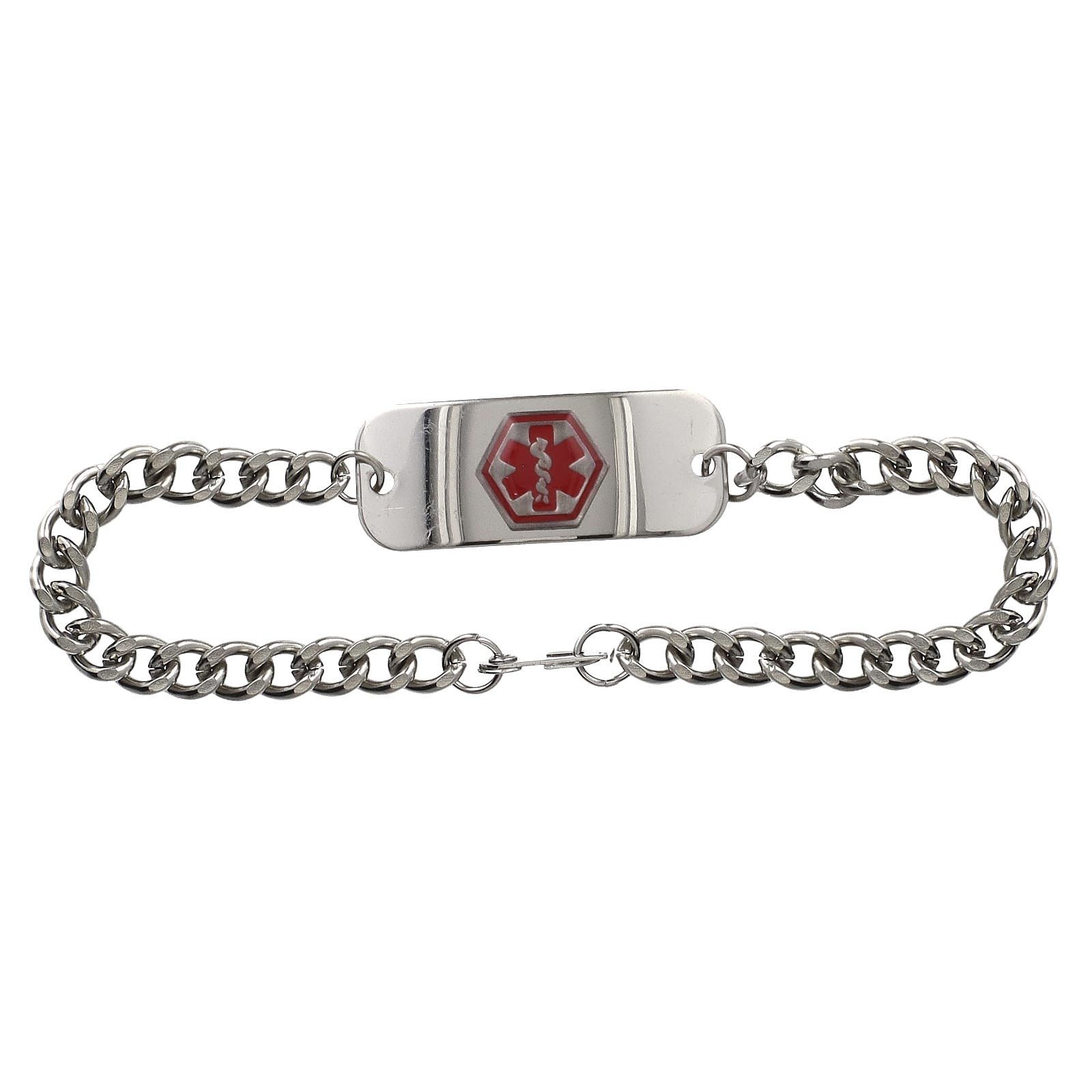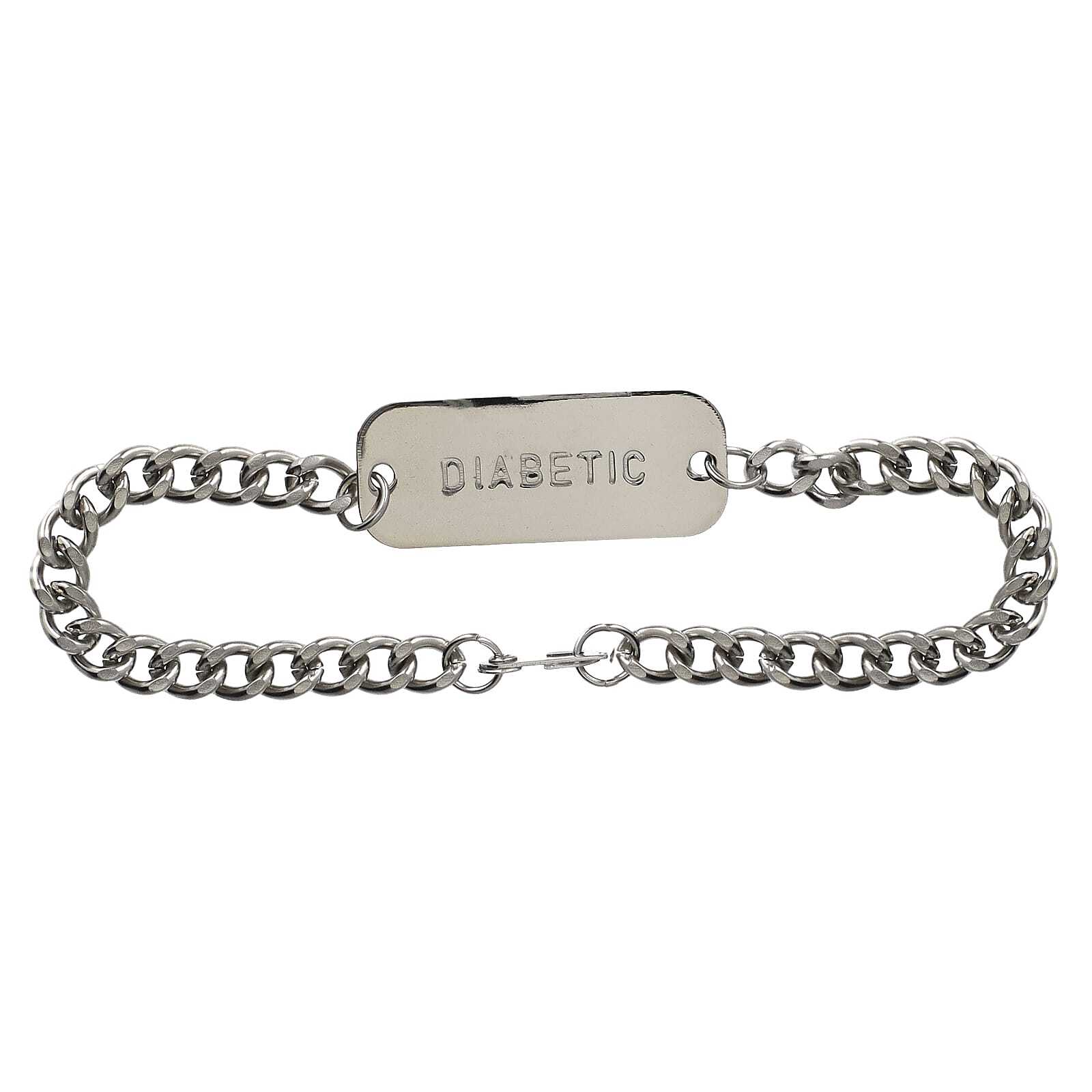Аптекарский диабетический фитнес-браслет. Этот гипоаллергенный ремешок из стали оповещает медицинского работника о состоянии вашего здоровья. Цитрусовая цепочка удобно размещается на запястье, а кулон имеет отполированное покрытие для максимальной заметности и стильного внешнего вида.