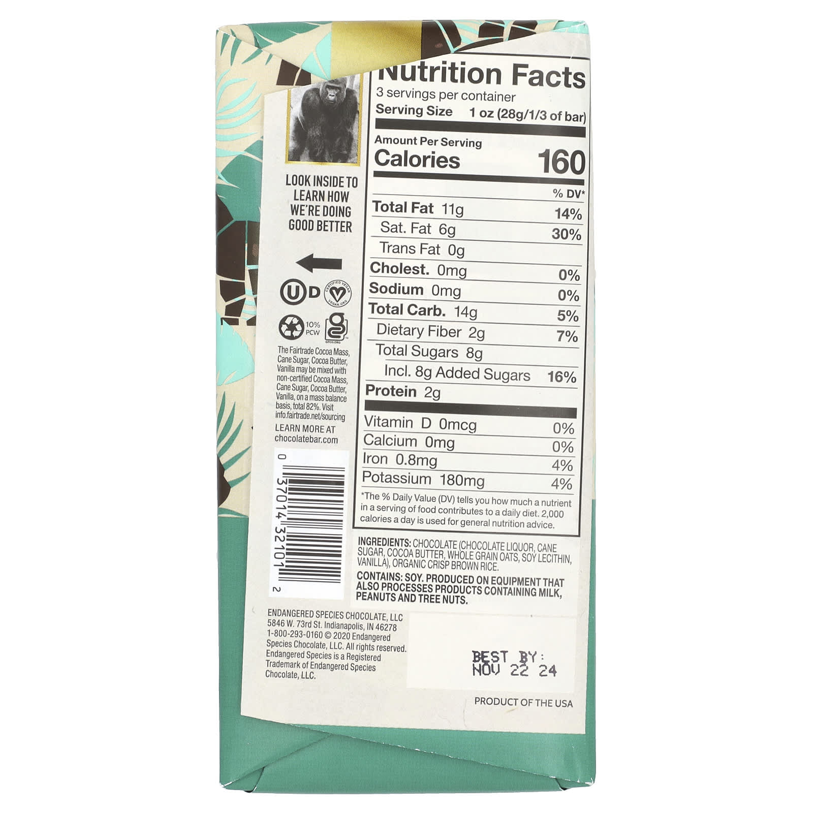 Шоколад (шоколадный ликер, тростниковый сахар, какао-масло, цельнозерновой овес, лецитина из сои, ваниль), органический хрустящий коричневый рис.