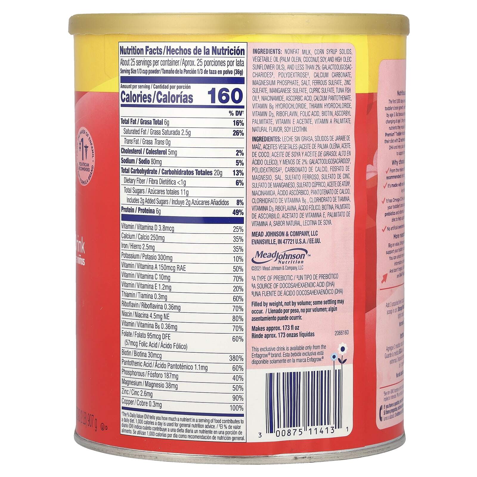 Обезжиренное молоко, сухая кукурузная патока, растительное масло (пальмовый олеин, кокос, сои, и высокоолеиновое подсолнечное масло), и менее 2%: галактоолигосахариды ‡, полидекстроза ‡, карбонат кальция, фосфат магния, соль, сульфат железа, сульфат цинка, сульфат марганца, сульфат меди, жир тунца§, никотинамид, аскорбиновая кислота, пантотенат кальция, витамин B6 гидрохлорид, тиамина гидрохлорид, витамин D3, рибофлавин, фолиевая кислота, биотин, аскорбил пальмитат, ацетат витамина E, витамин A (пальмитат), натуральный ароматизатор, лецитин из сои.