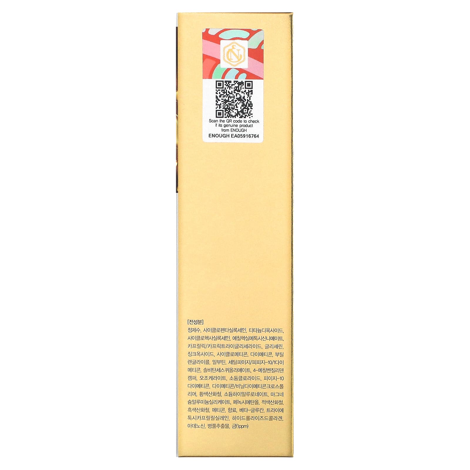 Вода, циклопентасилоксан, диоксид титана, циклогексасилоксан, этилгексил метоксициннамат, каприловый/каприновый триглицерид, глицерин, оксид цинка, циклометикон, диметикон, бутиленгликоль, арбутин, цетил ПЭГ/ППГ-10/1 диметикон, сорбитана сесквиолеат, 4-метилбензилиден камфора, озокерит, хлорид натрия, ПЭГ-10 диметикон, диметикон/винил диметикон кроссполимер, CI 77492, гиалуронат натрия, алюмосиликат магния, феноксиэтанол, CI 77491, CI 77499, метикон, отдушка, бета-глюкан, триэтоксикаприлилсилан, гидролизованный коллаген, аденозин, экстракт готу колы (Centella asiatica), золото.