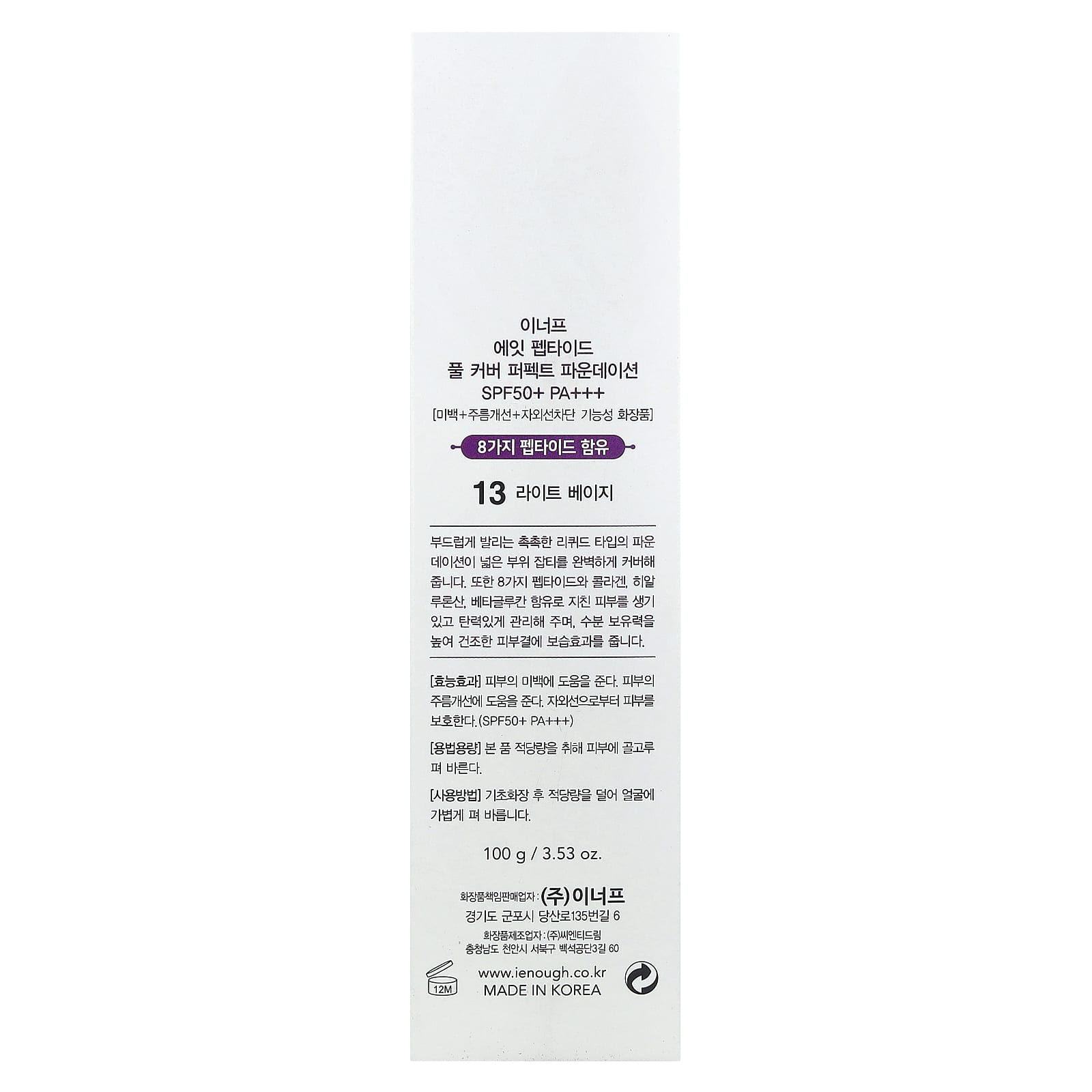 Очищенная вода, циклопентасилоксан, диоксид титана, циклогексасилоксан, этилгексилглицерин нац, каприловый / каприновый триглицерид глицерин. оксид цинка, циклометикон, диметикон, бутиленгликоль, арбутин, цетилфаг / н пицца -10/1 диметикон, солбитан сесквиолеат, 4-метилбензилиден камфора-камфора, озокетит, хлорид натрия фиджи-10 диметикон, диметикон / винилдиметикон крестообразный молимер гиалуронат натрия, алюминат магния, титанат, желтый оксид железа, феноксиэтанол, метикон, бета-глюкан, красный оксид железа, черный оксид железа, де гидролизованный коллаген, отдушка, аденозин, экстракт готу колы (Centella asiatica), пептиды: вч-де-камелтид -7 (000 част. / млн), es второй октапептид -40,00 (пм) hs-олигопептид -8 (0,00 (част. / млн), hs-пента пептид -190,00 част. / млн), октапептид -7 (000 галлонов в минуту), es вторичный-де-кармелид -00poml тритид кофейного масла -10,00